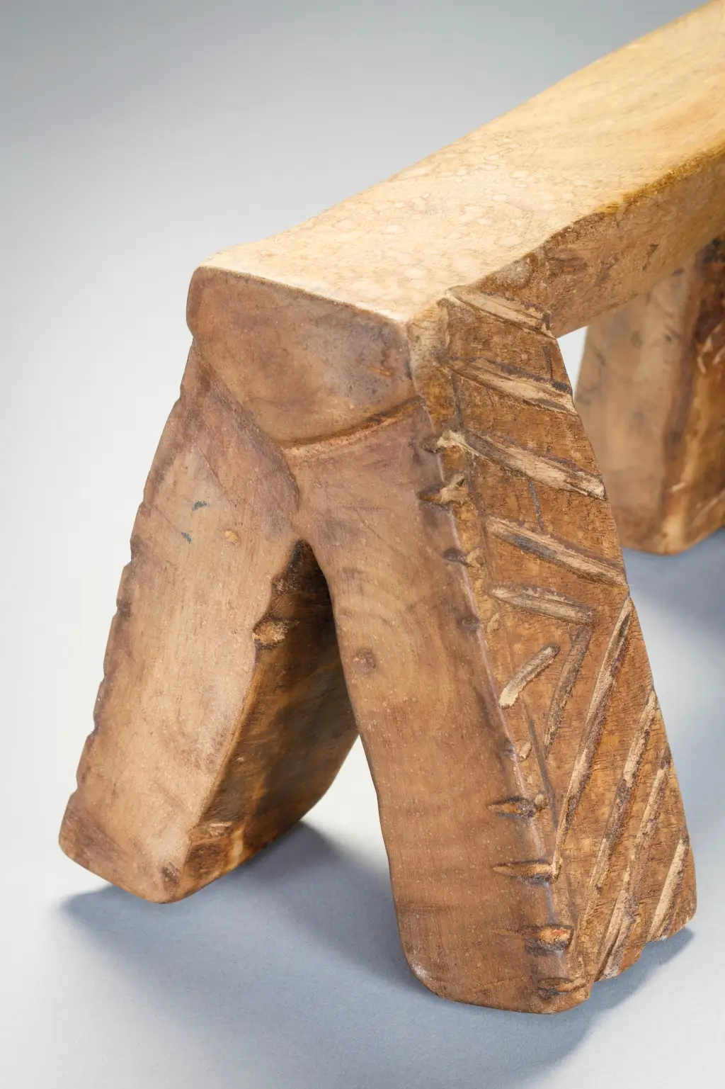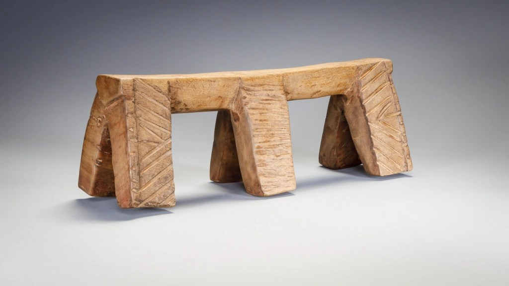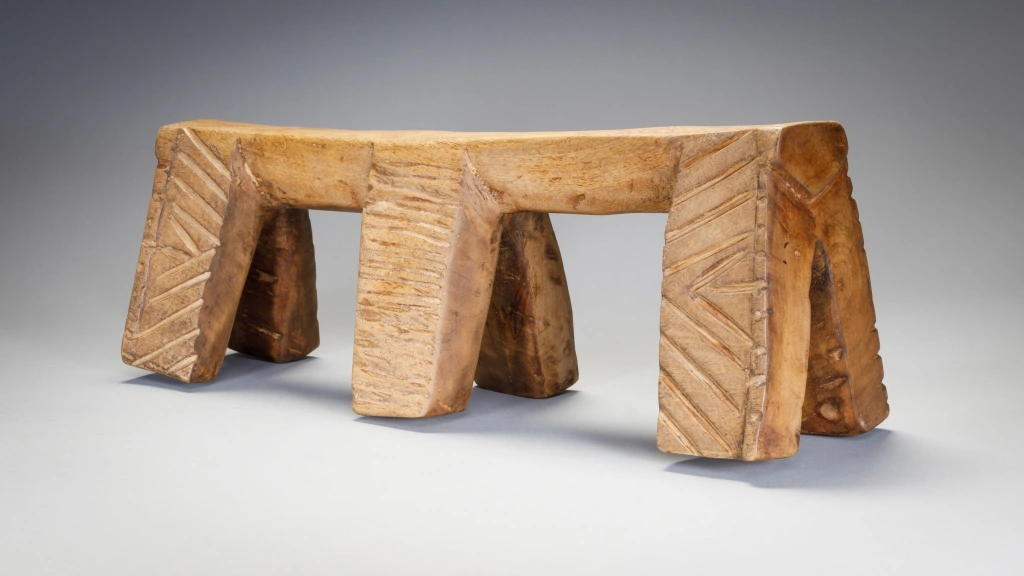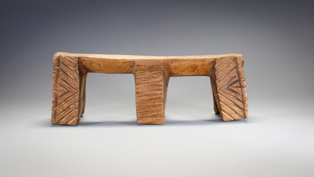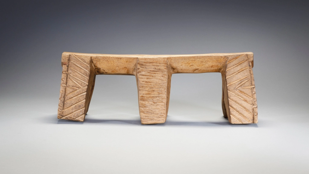 Le travail assez frustre du sculpteur laisse apparaitre une certaine rudesse de la vie dans les villages Nguni du XXe siècle. Malgré le a symétrie des pieds extérieures les entailles semblent avoir été faites de façon spontanée et non  contrôlée. C’est une pièce simple mais attachante.