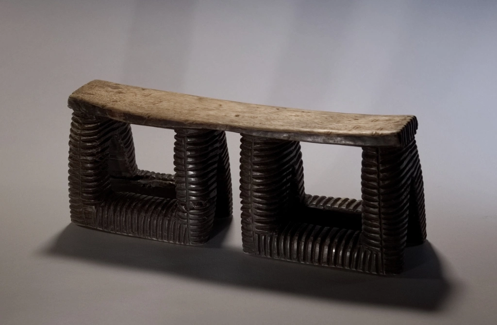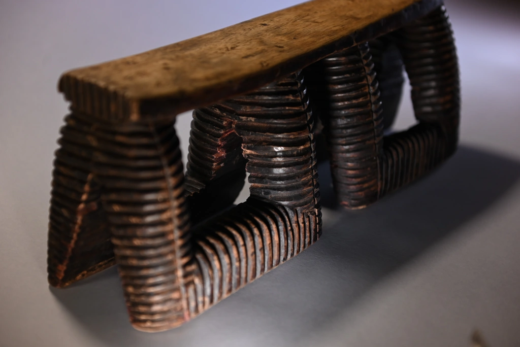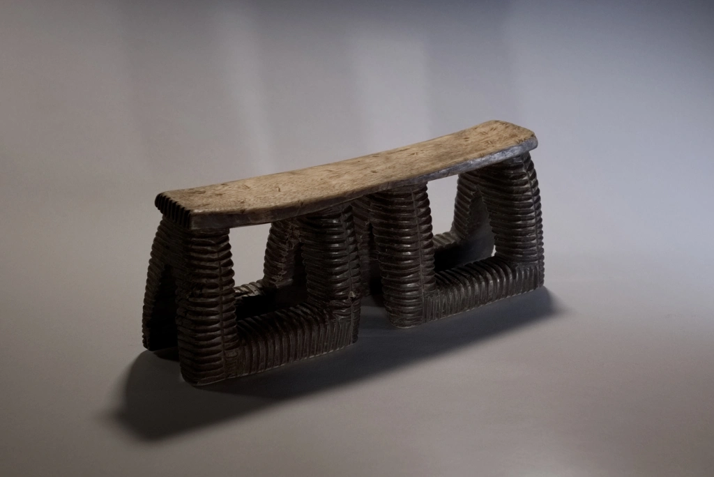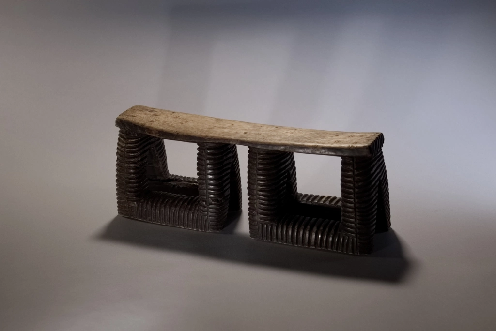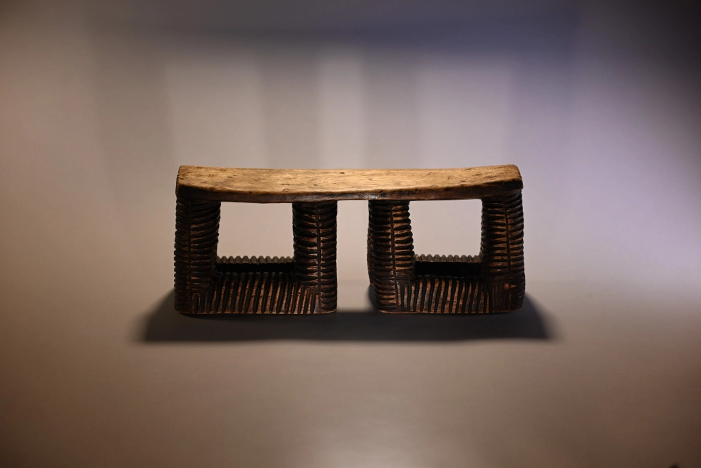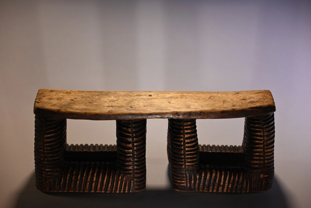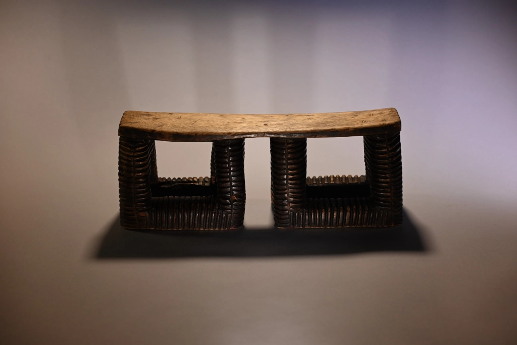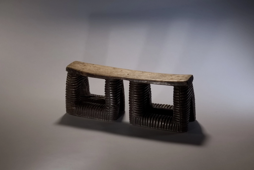 Cette pièce Nguni est composée de 2 faces, elles même composée de 2 carrés évidés chacune, eux même composés de boudins striés. Cette pièce, représentée au XXe siècle dans divers ouvrages, avait disparu de la circulation depuis les enchères dont elle avait fait l’objet à Londres, chez Sotheby’s, en 1983.