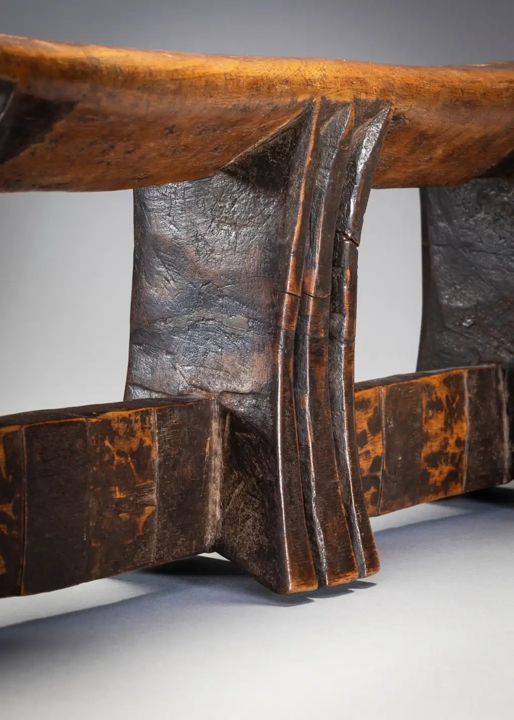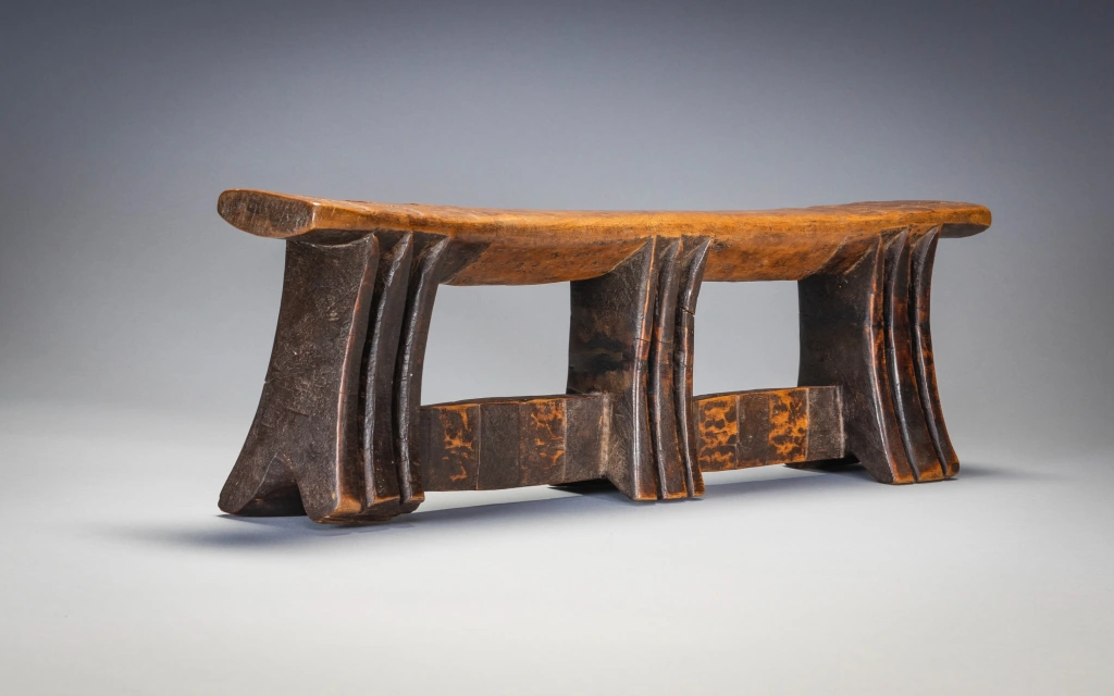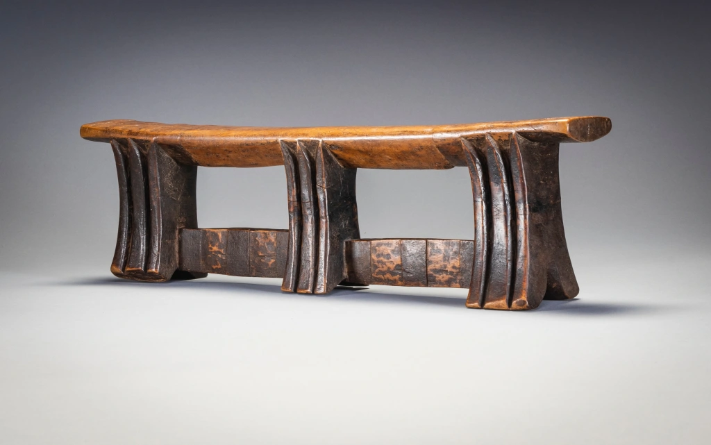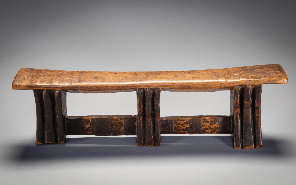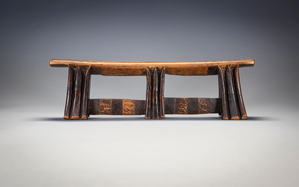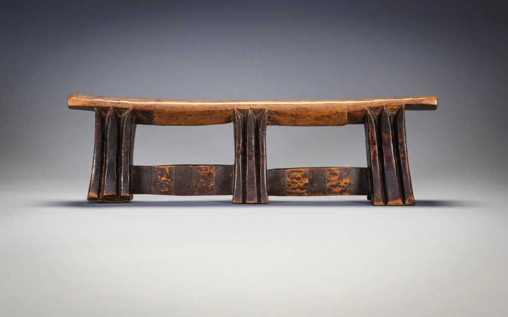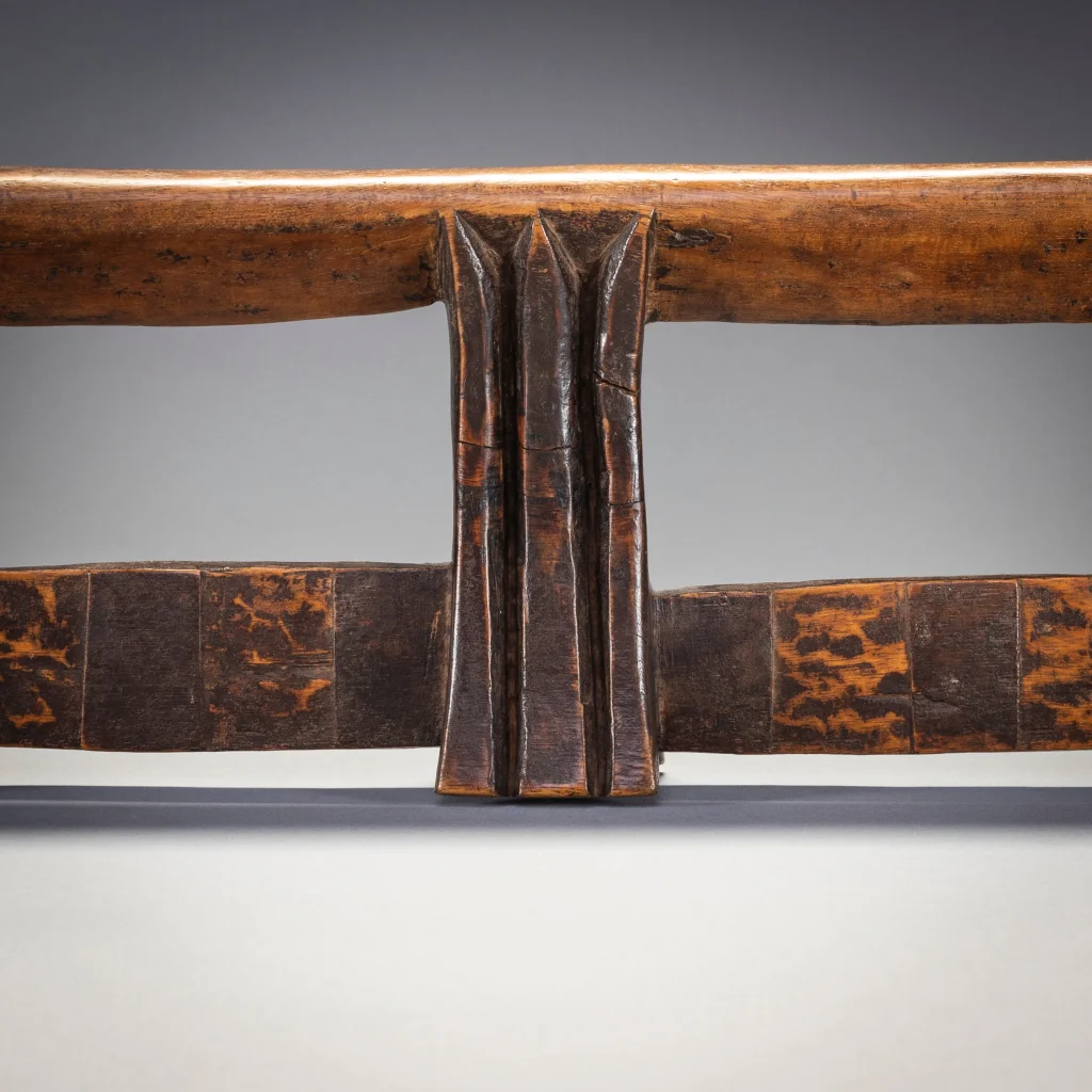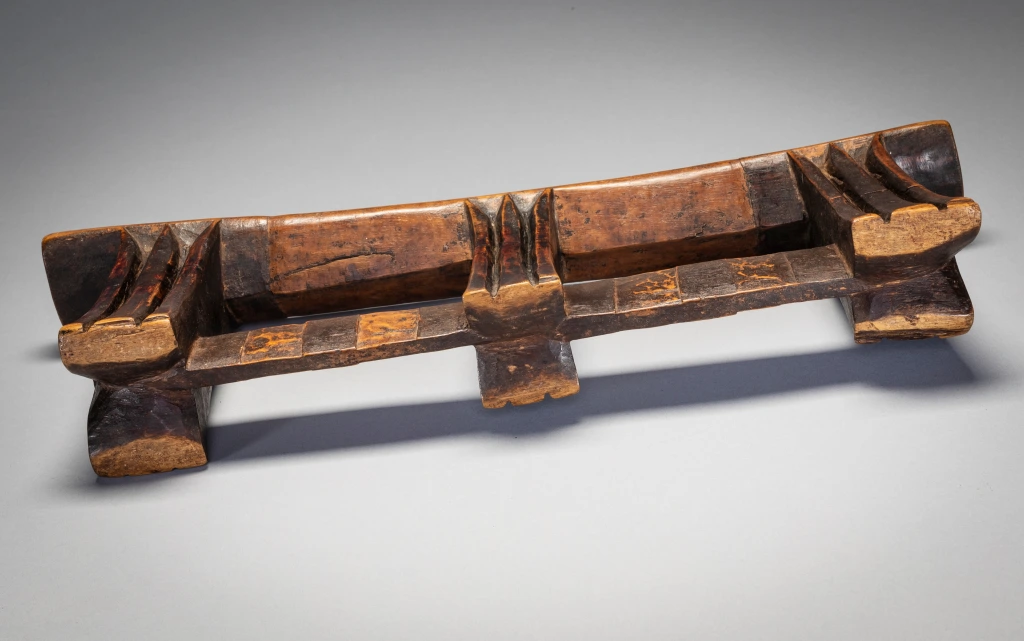 Il s’agit d’un exemple de la forme distincte des appuis-tête sculptés par Stekemani Ntshangase.Il a été acheté à la famille de son propriétaire d’origine dans la région de Ngwavuma, dans le nord du Kwa-Zulu-Natal, par Gertrude Dube en 2005. Après avoir fait partie de la collection Goodall pendant plusieurs années, elle a rejoint la collection Zimer en 2015. L’appui-tête est sculpté comme les autres pièces de la collection en bois Kiaat dit « bois de sang » très répandu dans la Région.