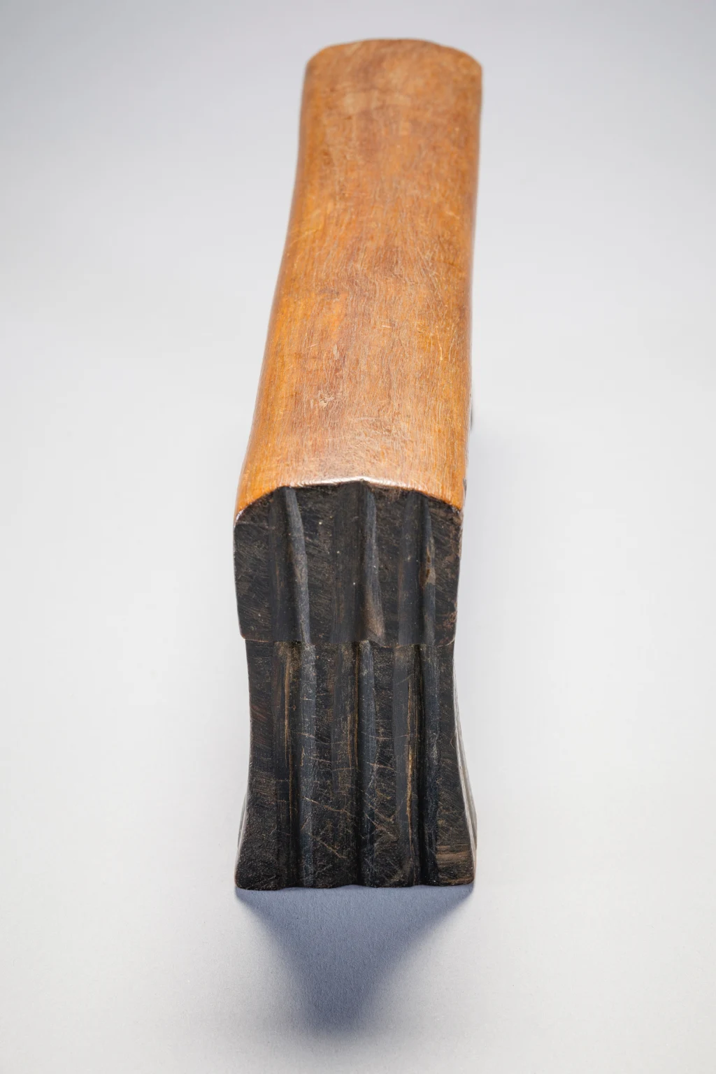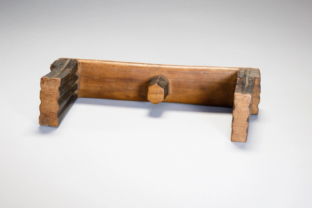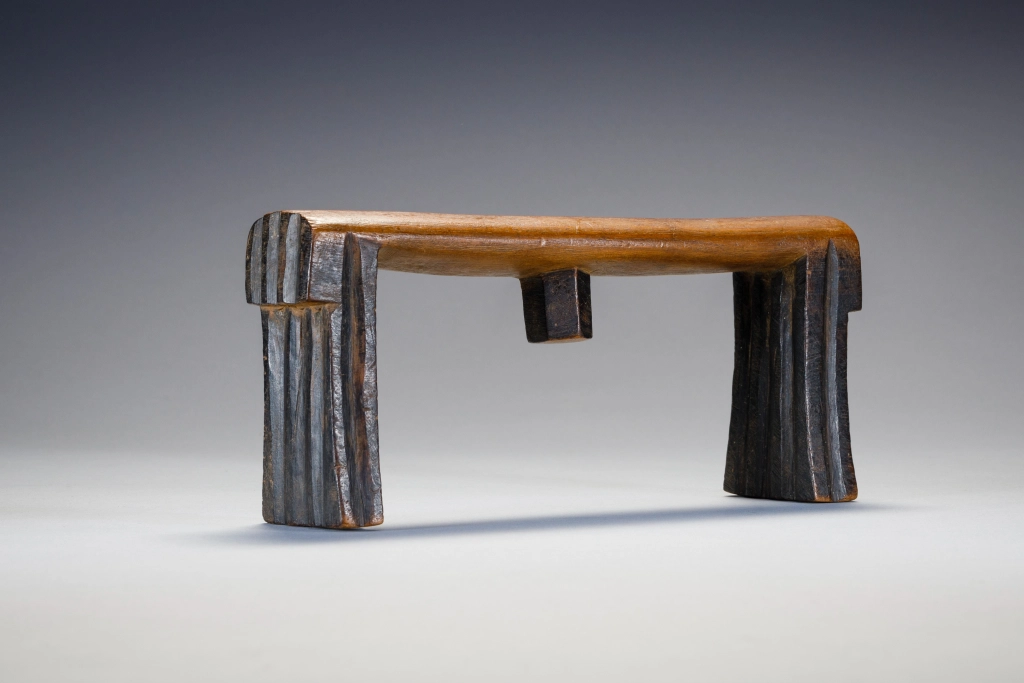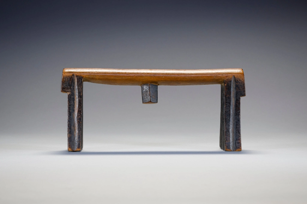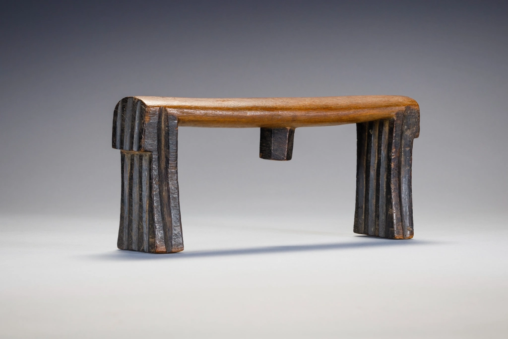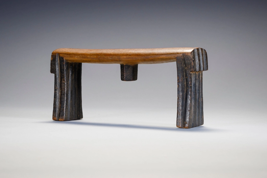 Un appui-tête swazi miniature avec un sommet arrondi, de petits pieds et un ergot à facettes. Bien qu’il ne semble pas avoir été très utilisé, il s’agit d’une pièce ancienne authentique. Comme le dit Gordon dans son livre, « ces appuis-tête sont rares et beaucoup d’entre eux ne présentent pas de signes d’utilisation régulière, bien que certains d’entre eux soient anciens. Il est possible qu’ils soient trop instable pour être utilisés confortablement. On pense qu’il s’agissait d’appuis-tête de voyage légers. «
