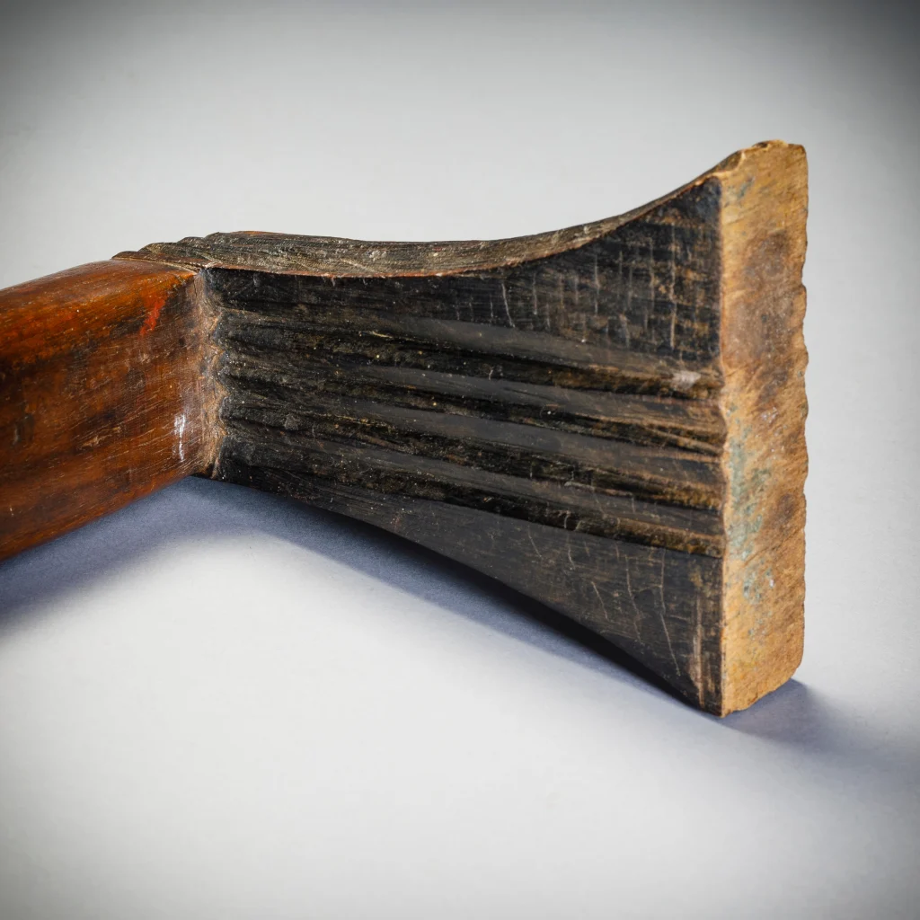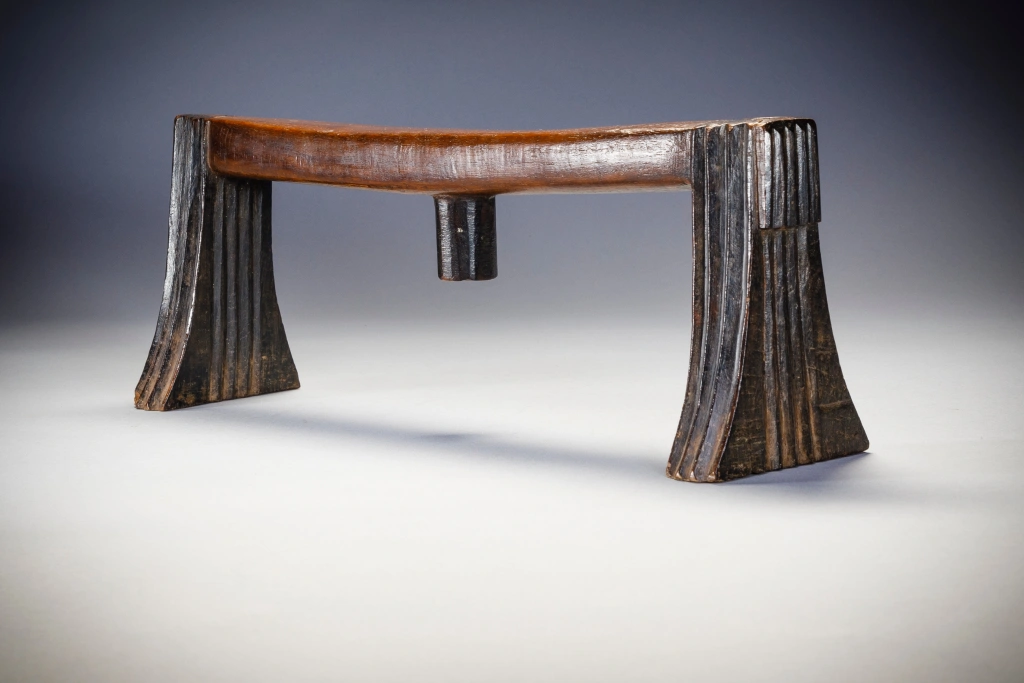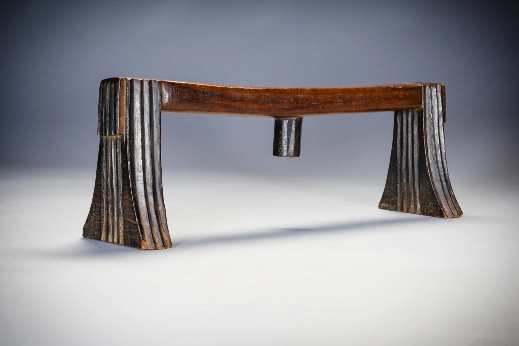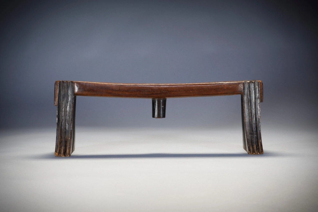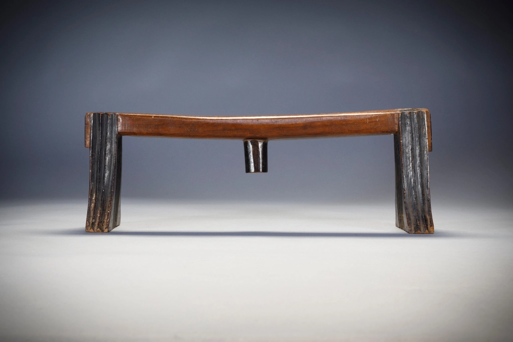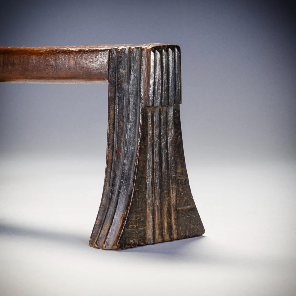 Cet appui-tête fonctionne en pair ave S050. Ces deux appuis-tête ont été offerts lors d’un mariage comme le veut la coutume. Ils sont en bois de sang, leur finesse leur donne une certaine noblesse. Cette pièce est celle du mari.