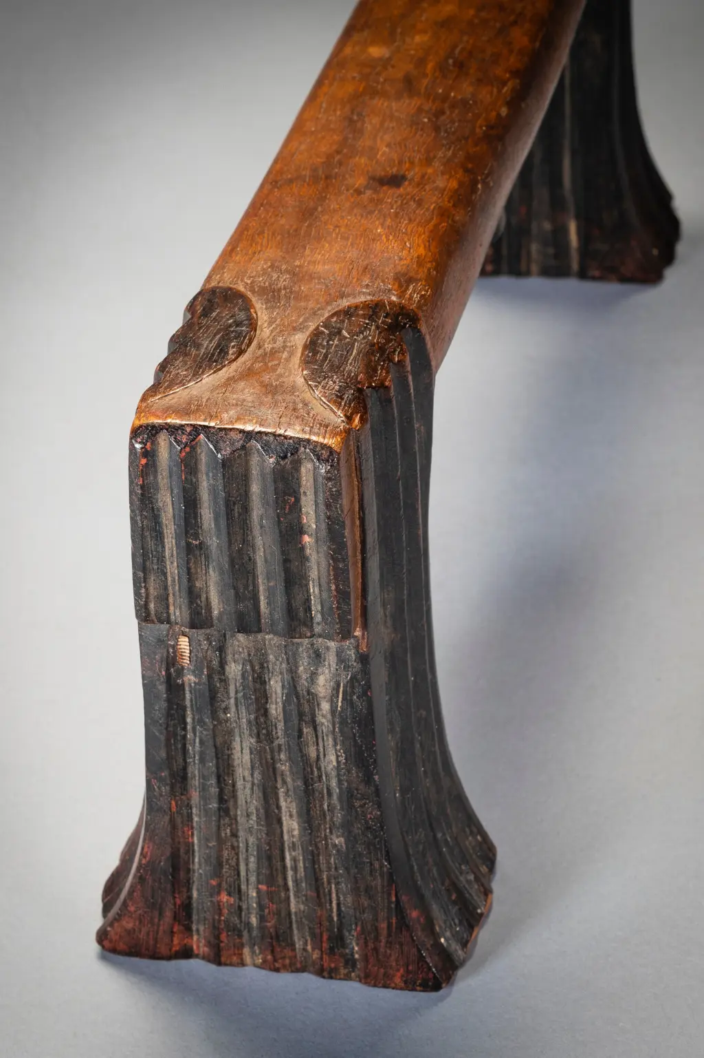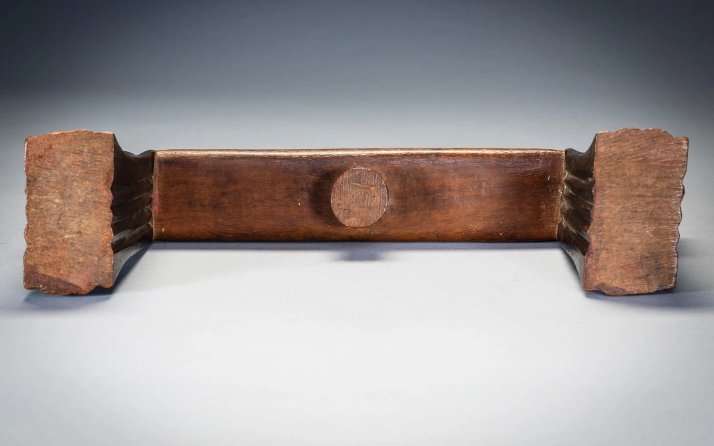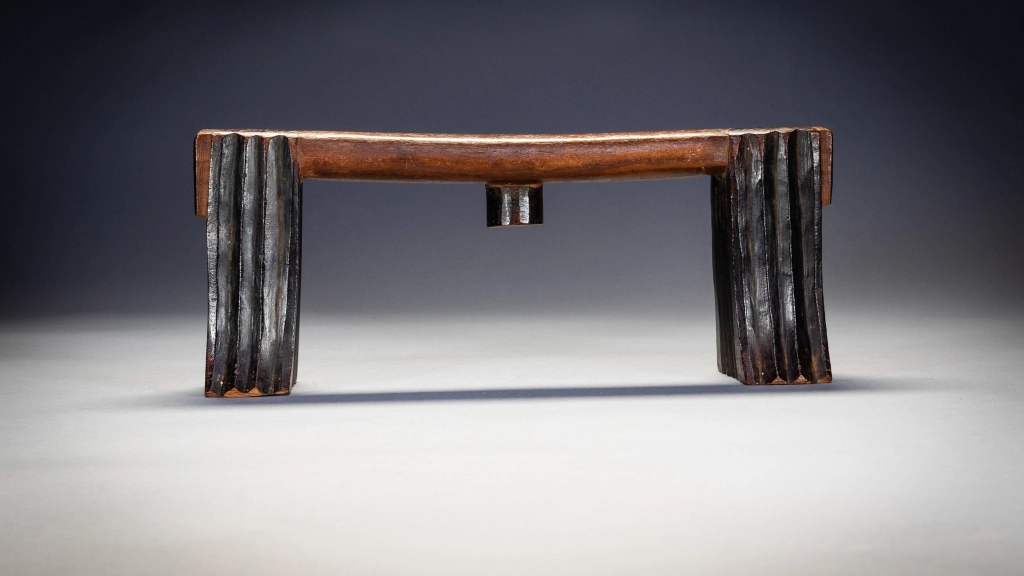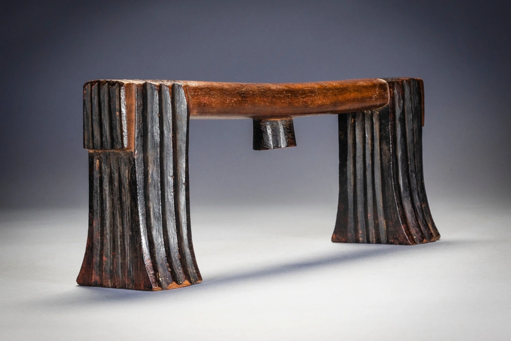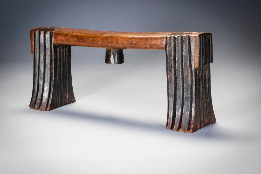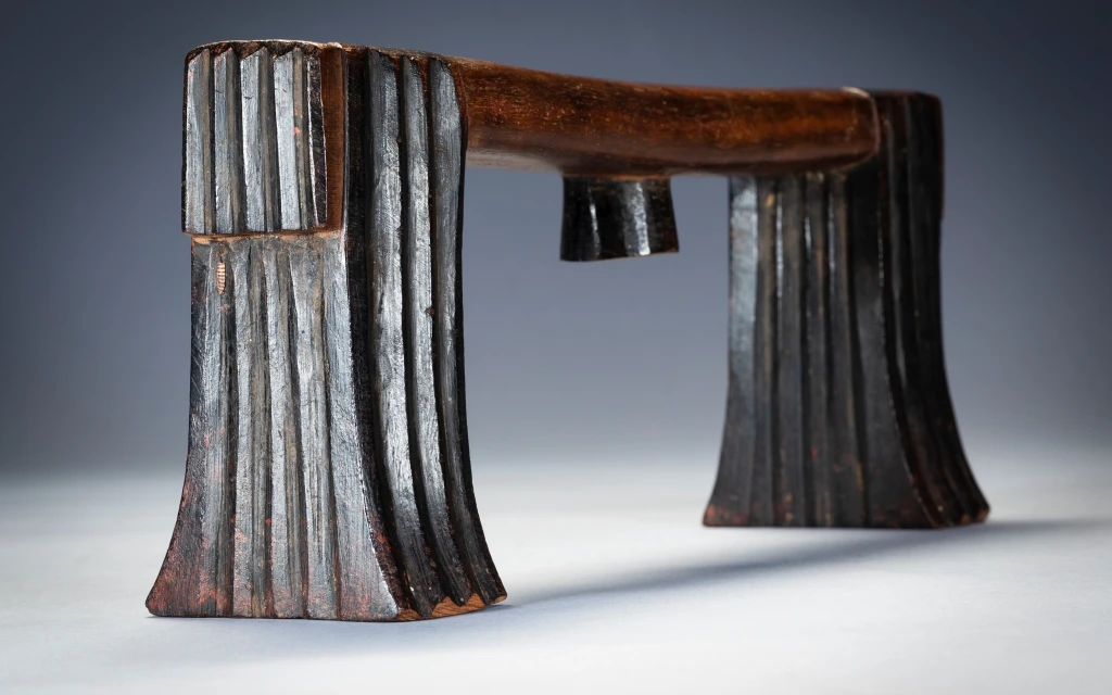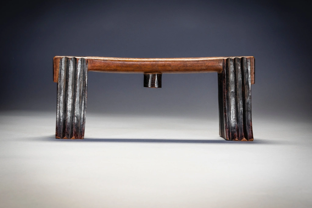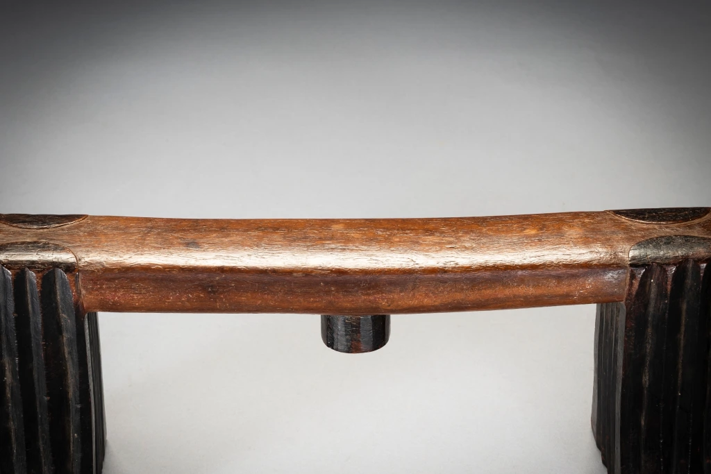 Cet appui-tête fonctionne en pair ave S049. Ces deux appuis-tête ont été offerts lors d’un mariage comme le veut la coutume. Ils sont en bois de sang, leur finesse leur donne une certaine noblesse. Cette pièce est celle de la mariée.