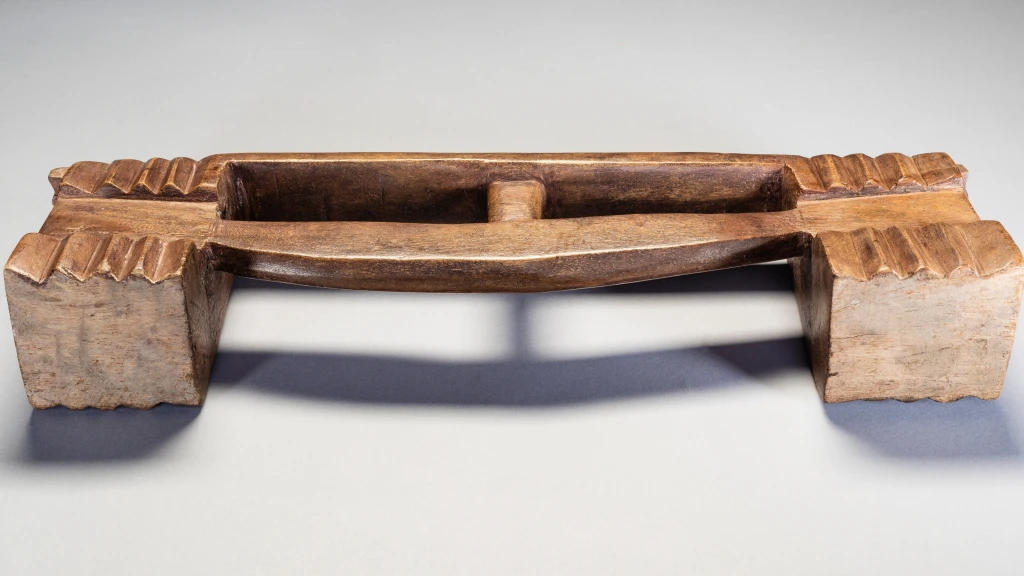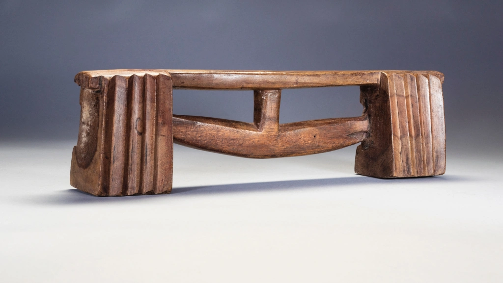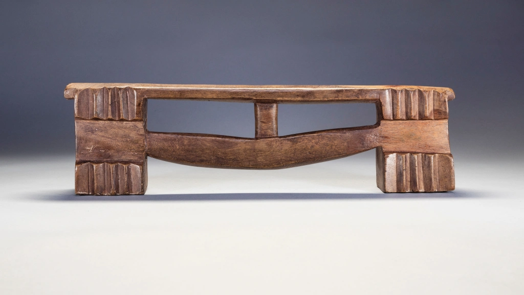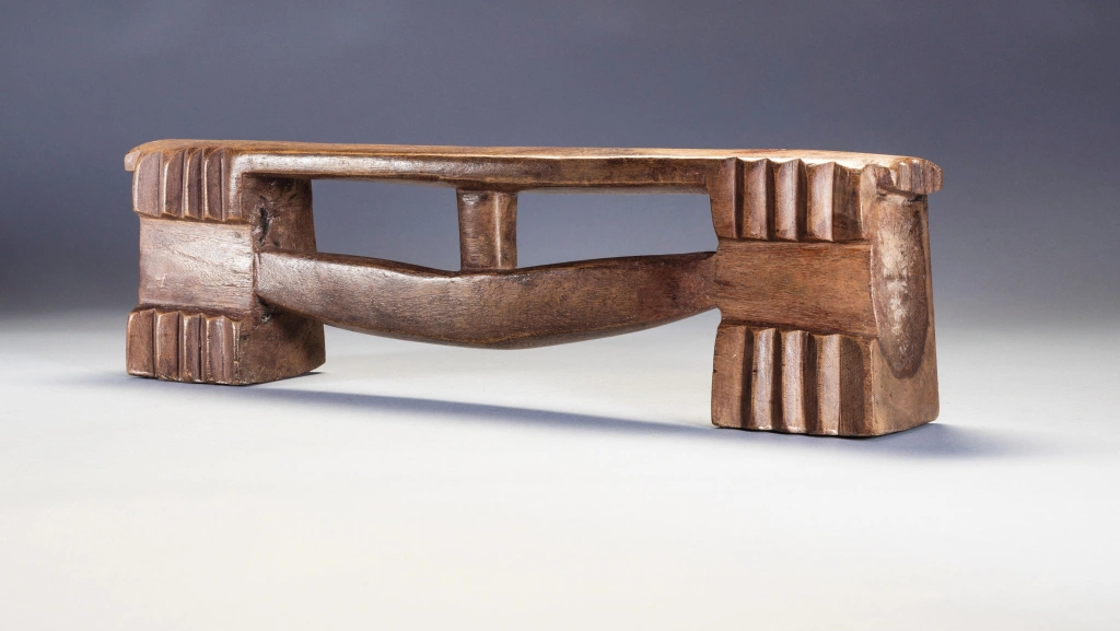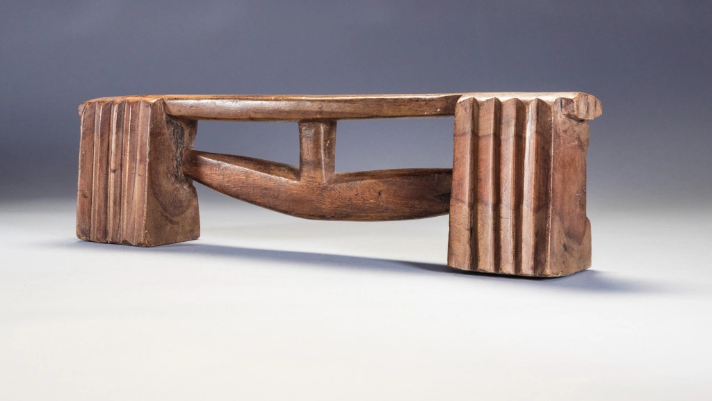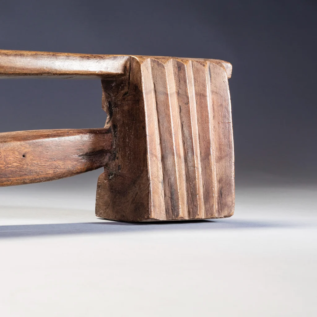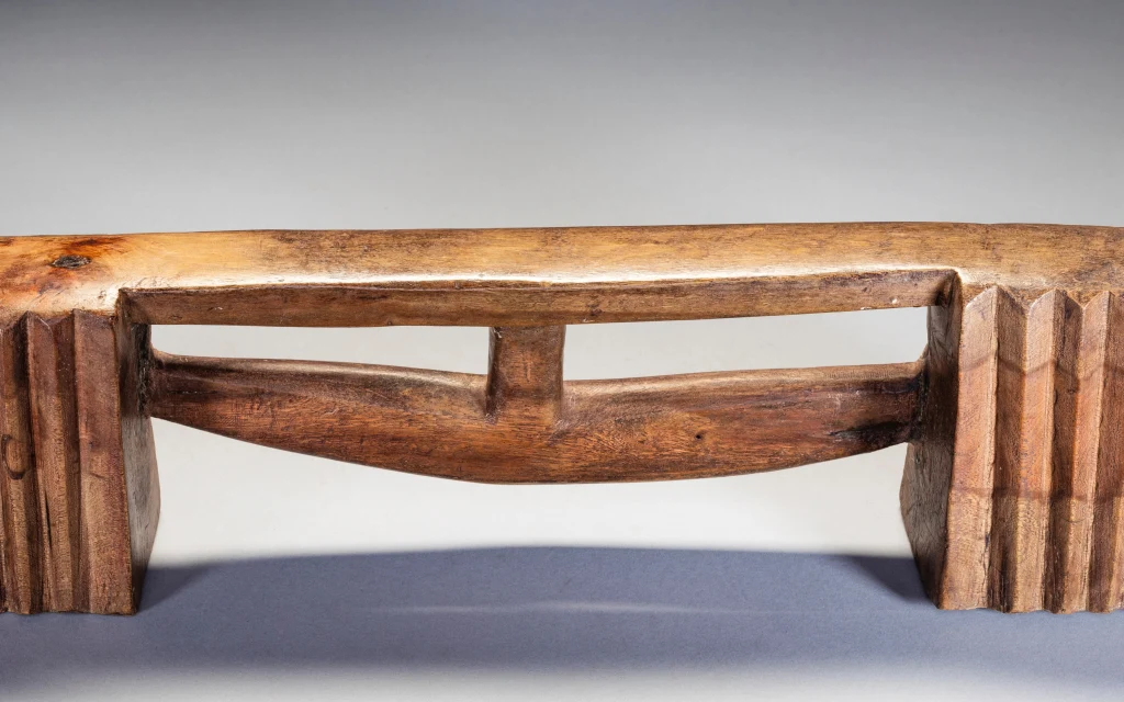 Une pièce fabriquée dans un bois très lourd et avec une forme extrêmement originale. Cette dernière est intermédiaire entre zoulou à barre et zoulou à flèche. Cette barre-flèche peu épaisse affleure sur l’une des faces créant une dissymétrie intéressante et esthétique rendant les faces recto et verso différentes.