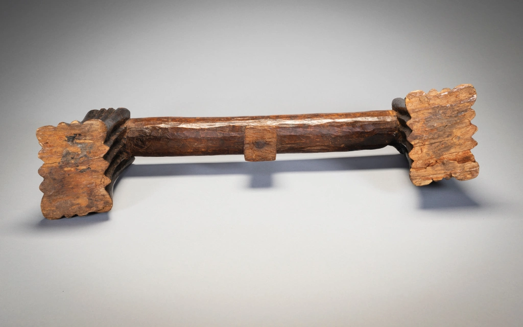 Une pièce classique et robuste avec une belle patine et un téton à section carrée qui rajoute à la rigueur de cet appui-tête.