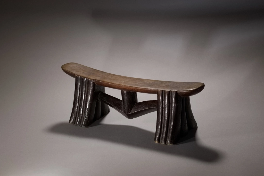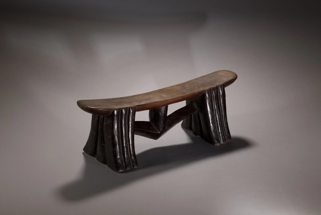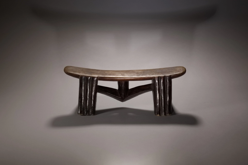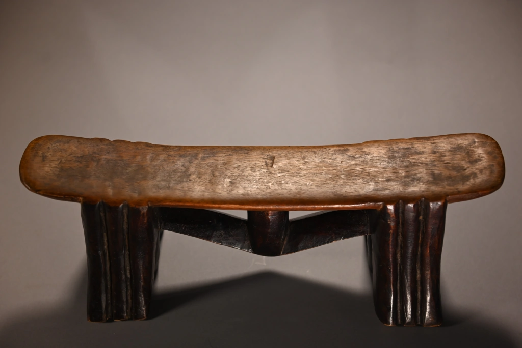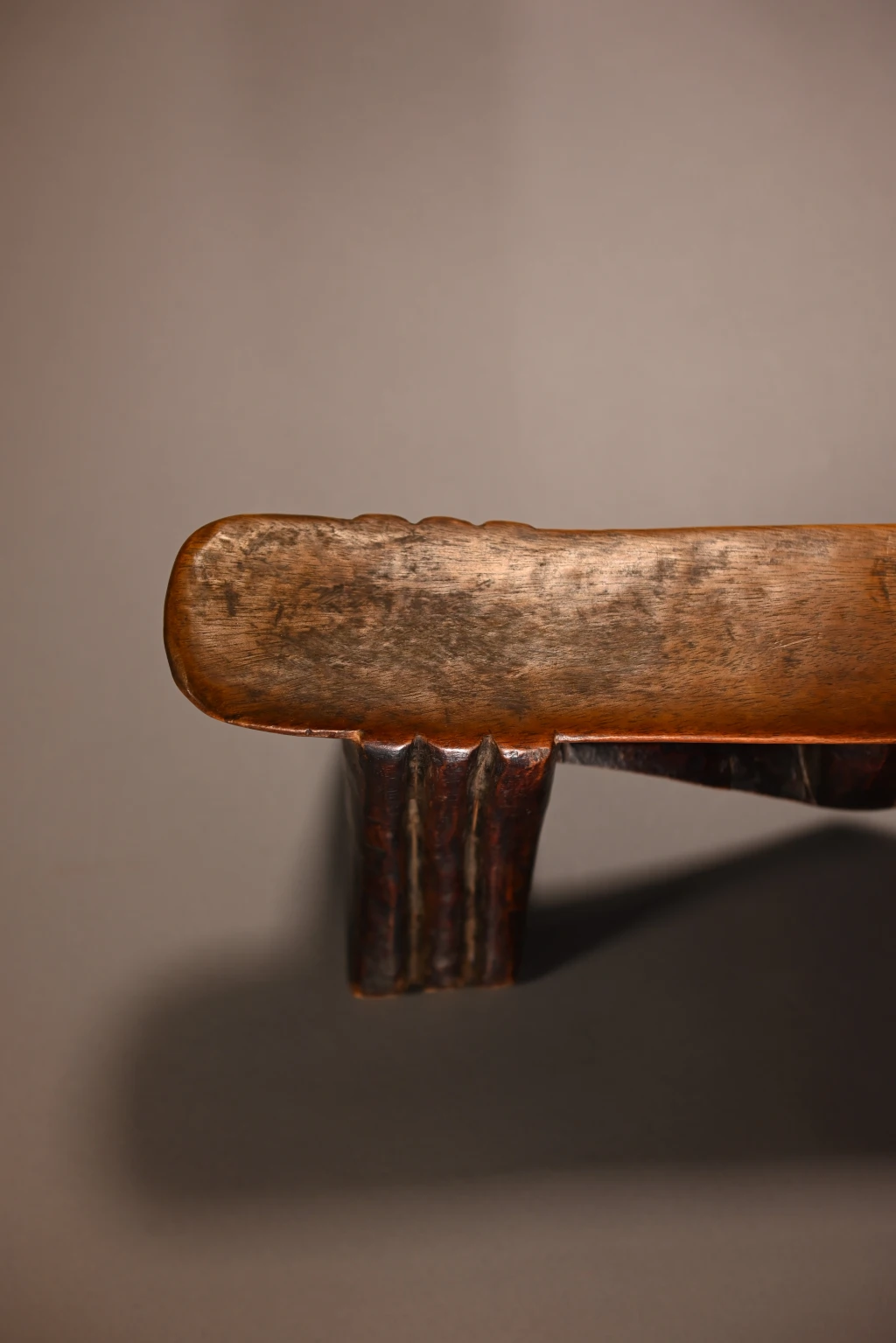 Un beau swazi avec une flèche accrochée à ses deux pieds. Ces derniers sont évasés et décorés de deux larges cannelures. Comme le précise Gordon Crawford dans Sicebile : « les appuis-tête avec flèches sont désormais très rares au Swaziland, il s’agit en effet d’un style très ancien, et n’existant que dans les grandes ou vieilles collections. »