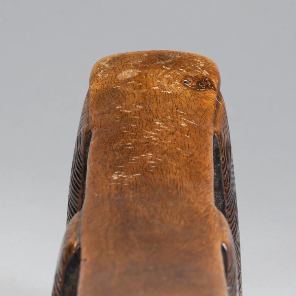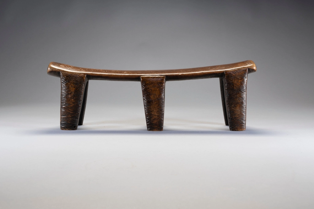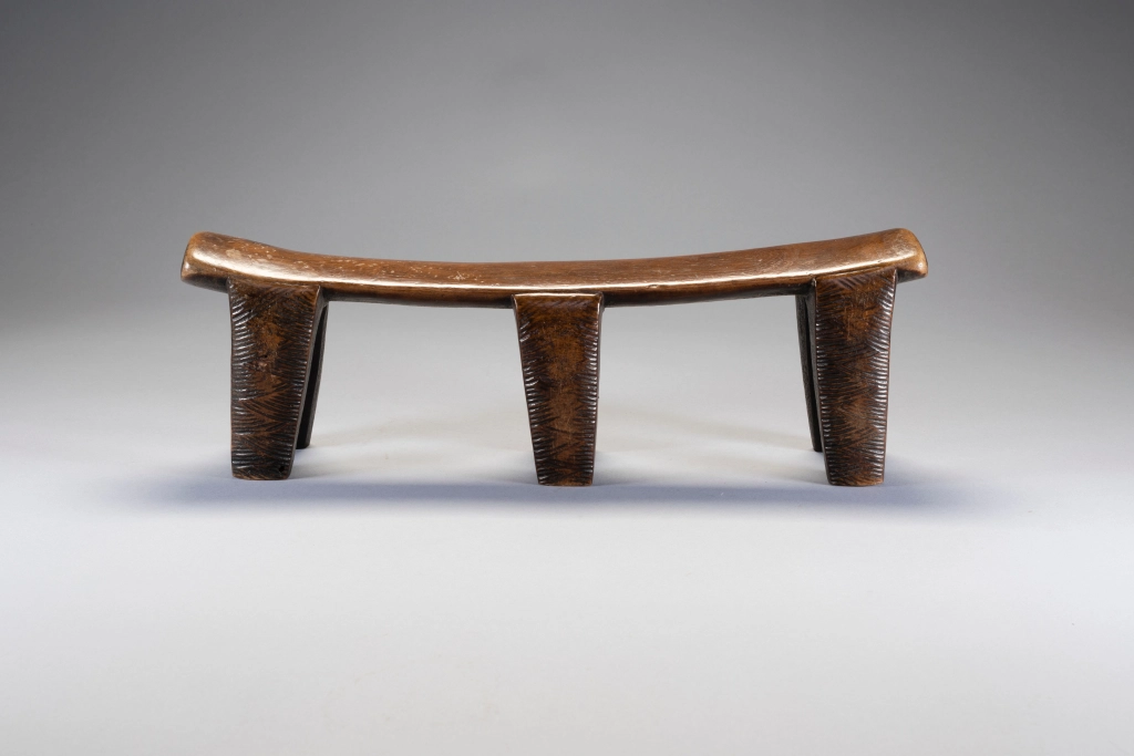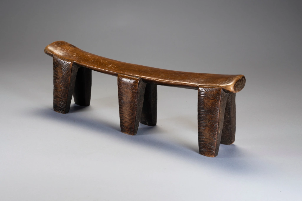 Il s’agit d’un appui-tête à 6 jambes du XIXe siècle. Il a été sculpté à partir d’un bois dur légèrement rouge peut-être du Kiaat. Les pieds de l’appui-tête sont légèrement carrés. Comme d’autres appui-têtes de style « Amasondo » ou « pieds de vaches », cet appui-tête est couvert de hachures que les Zoulous appellent « Ndlela yizegoli »: (Les chemins vers Johanensburg)