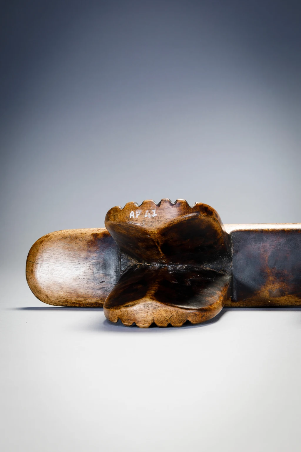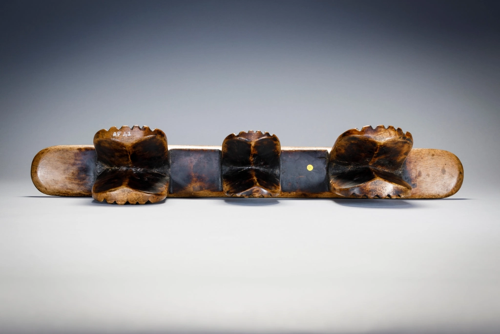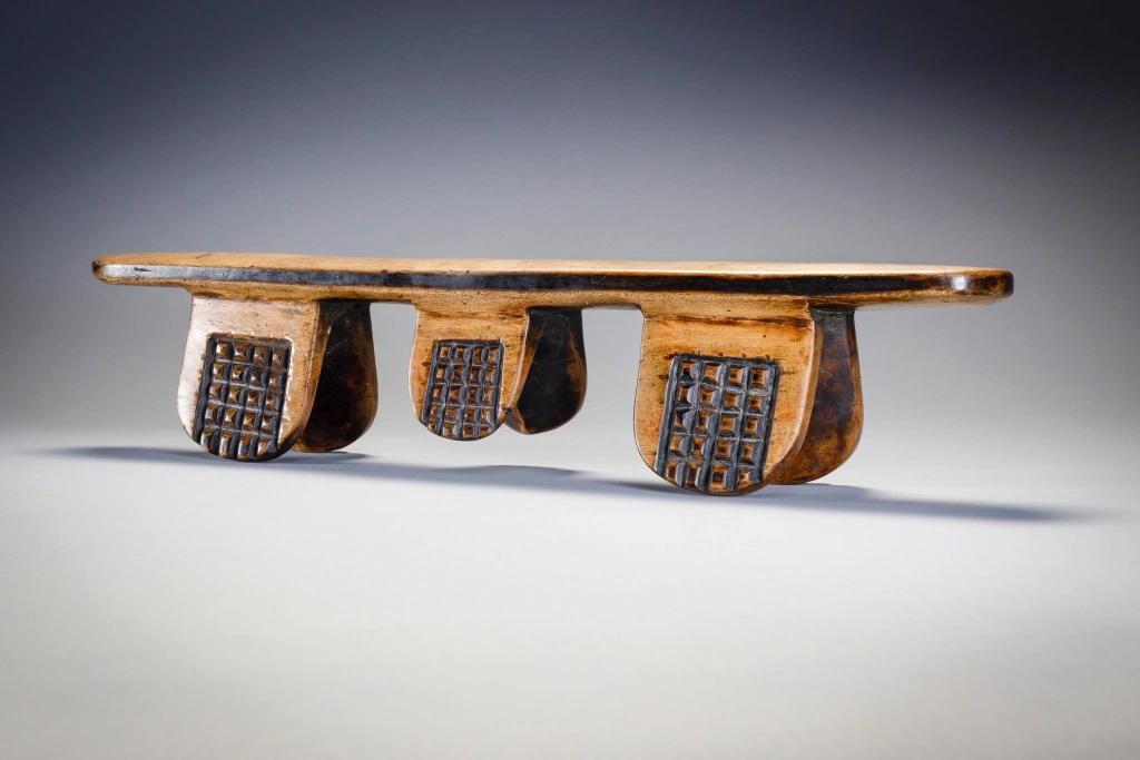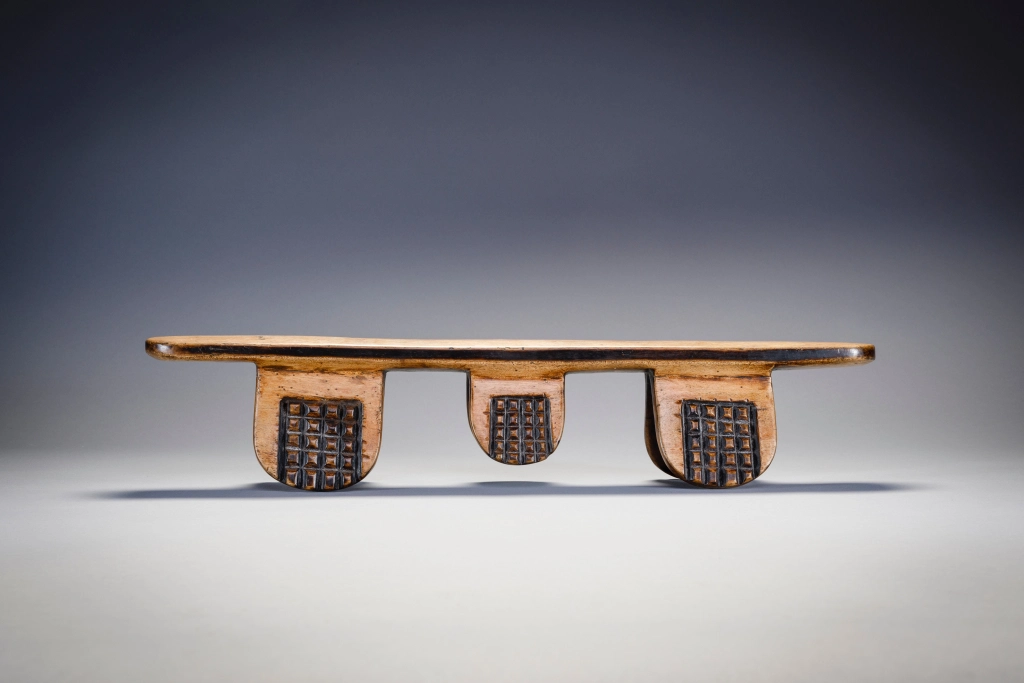 Il s’agit sans aucun doute de l’œuvre de Simamba Sithole. Les pieds de l’appui-tête comportent des blocs d’amasumpa. Arrivé en France vers 1970 cet appui tête est passé par 4 propriétaires français, collectionneurs ou galeries.