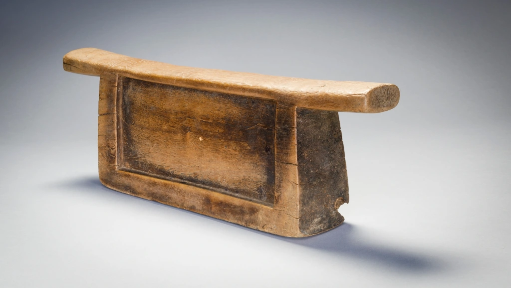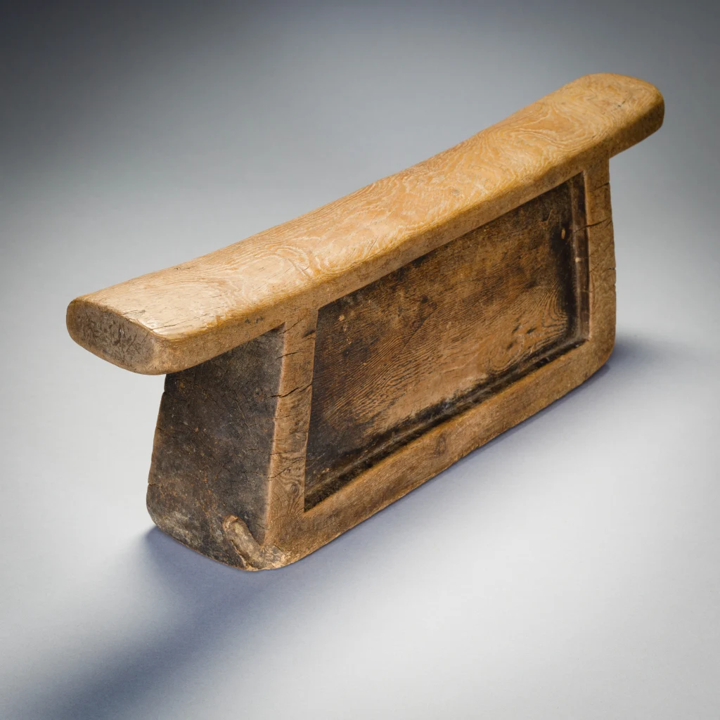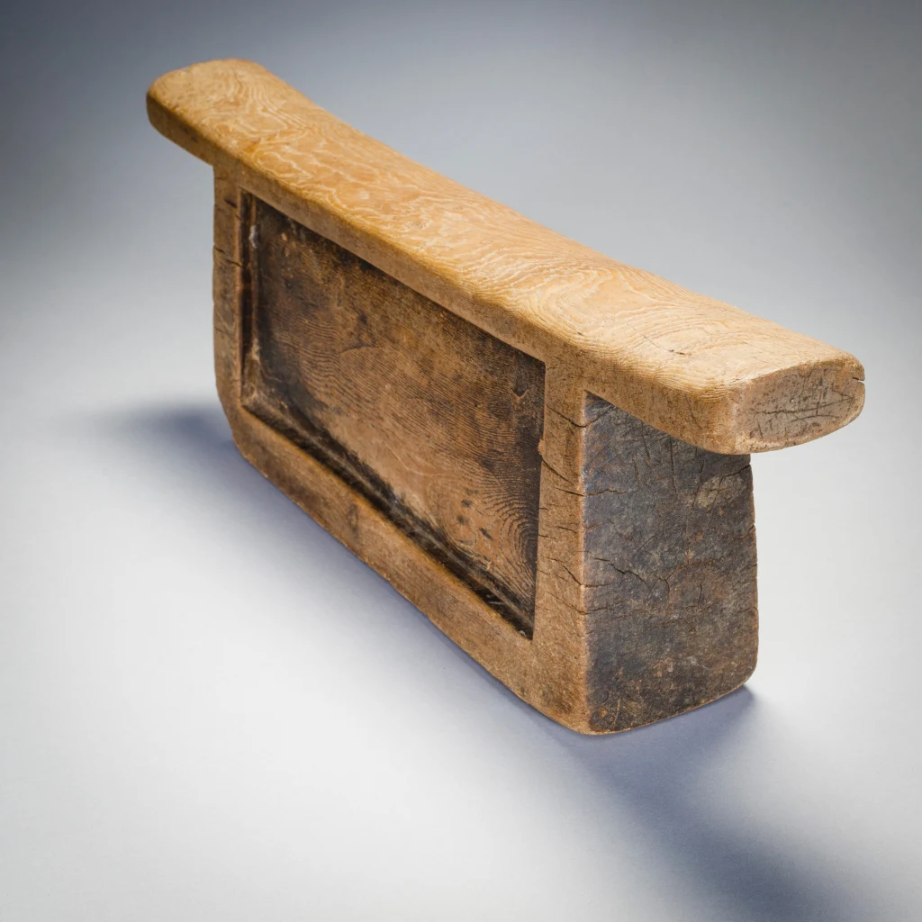 Ce bloc Msinga ancien et usé présente une patine de couleur miel. La simplicité de sa forme , son corps en léger retrait de la bordure extérieure dégagent une serenité propice au sommeil.