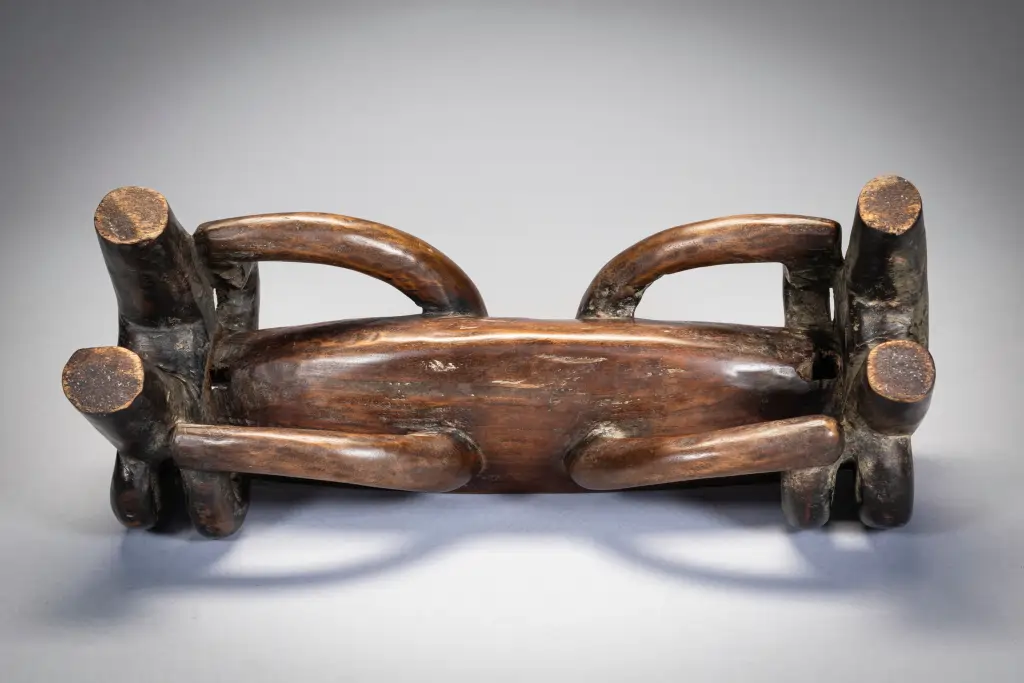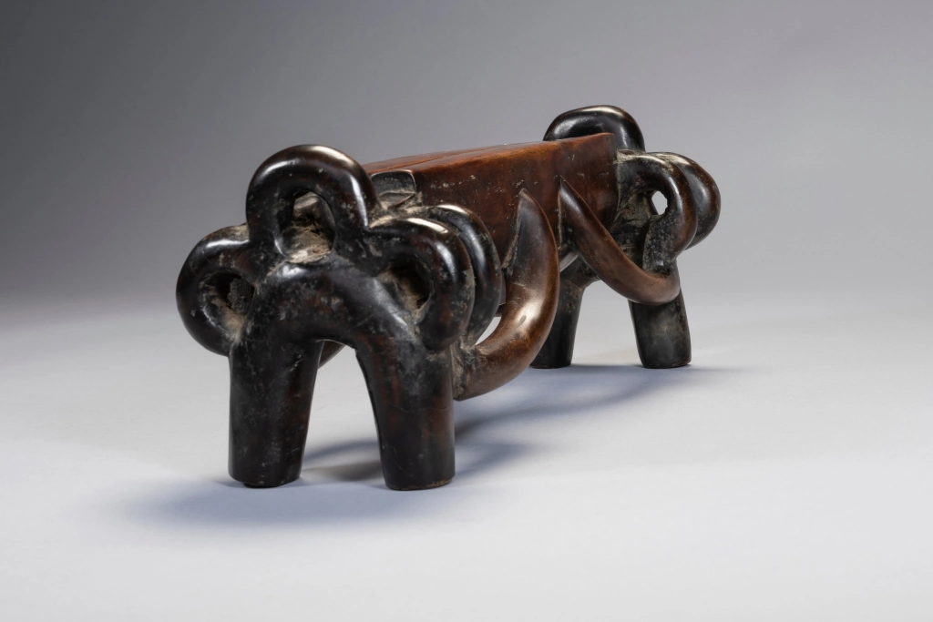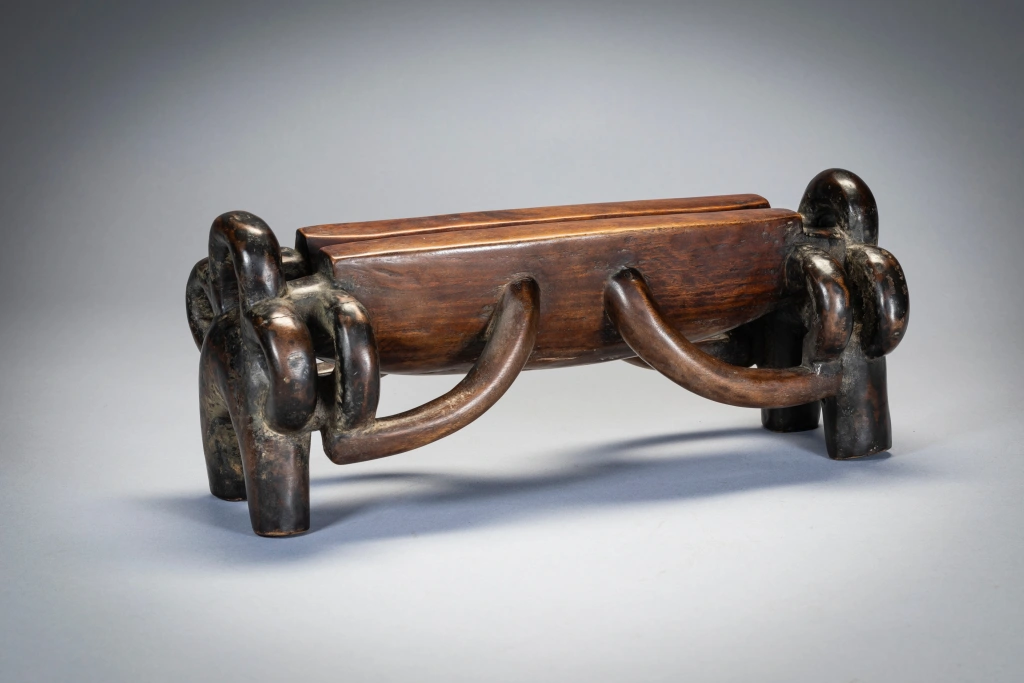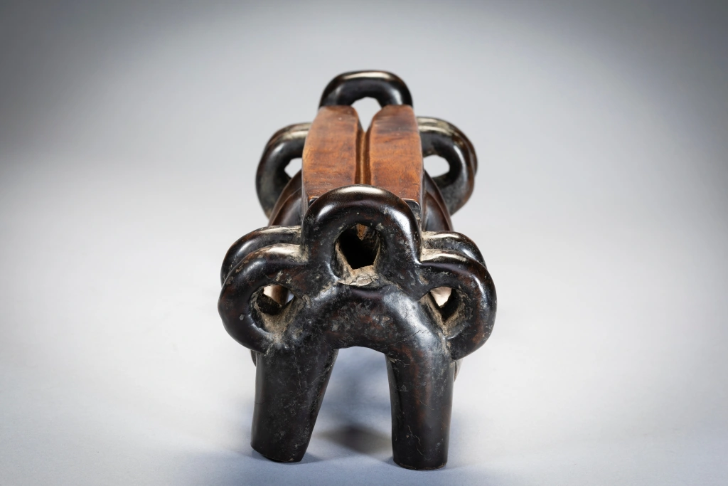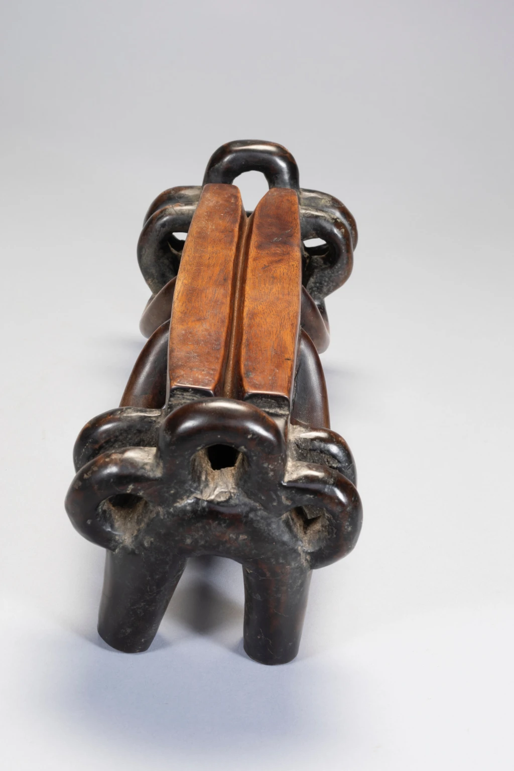 La forme de cet appui-tête est extrêmement sophistiquée révélant une grande dextérité du sculpteur. Ce type de forme datant de la fin du XIXe siècle est très rare comme l’indique le professeur Sandra Klopper dans l’article « Headrest: Facts, Functions and Forms » (voir lien). Seuls une dizaine de pièces de cette nature appartenant à des collections privées sont connue de la chercheuse, 3 pièces de ce type font partie de la collection Zimer (Z101, Z104, Z118). Il est important de noter la particularité inexpliqué de la fente longitudinale qu’on retrouve également sur la pièce de collection Horstmann.