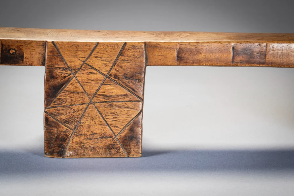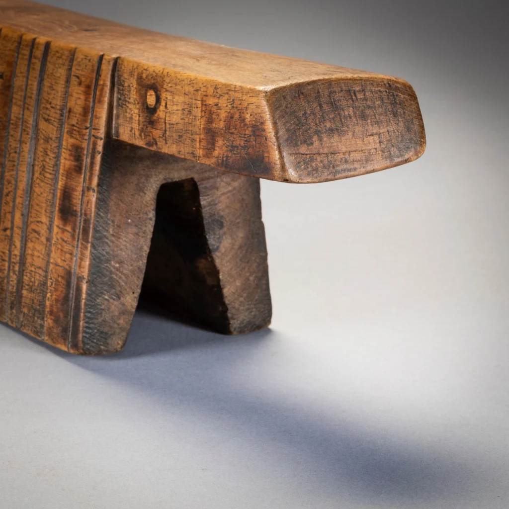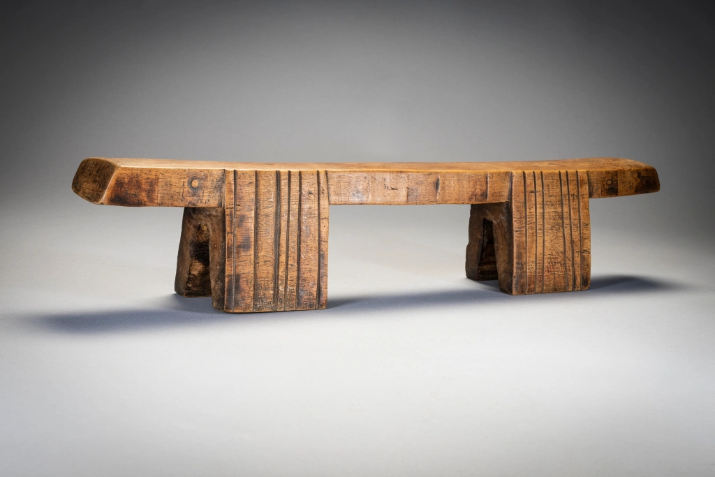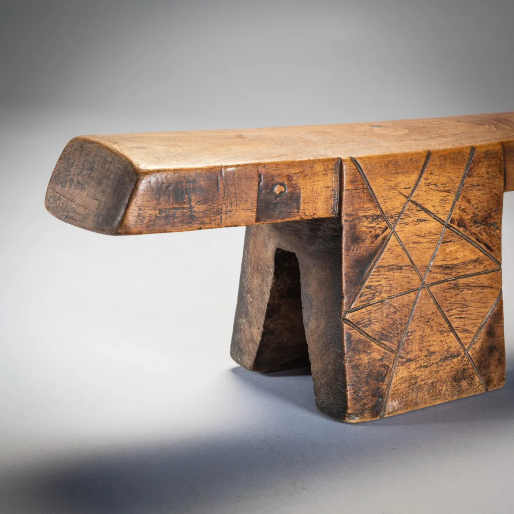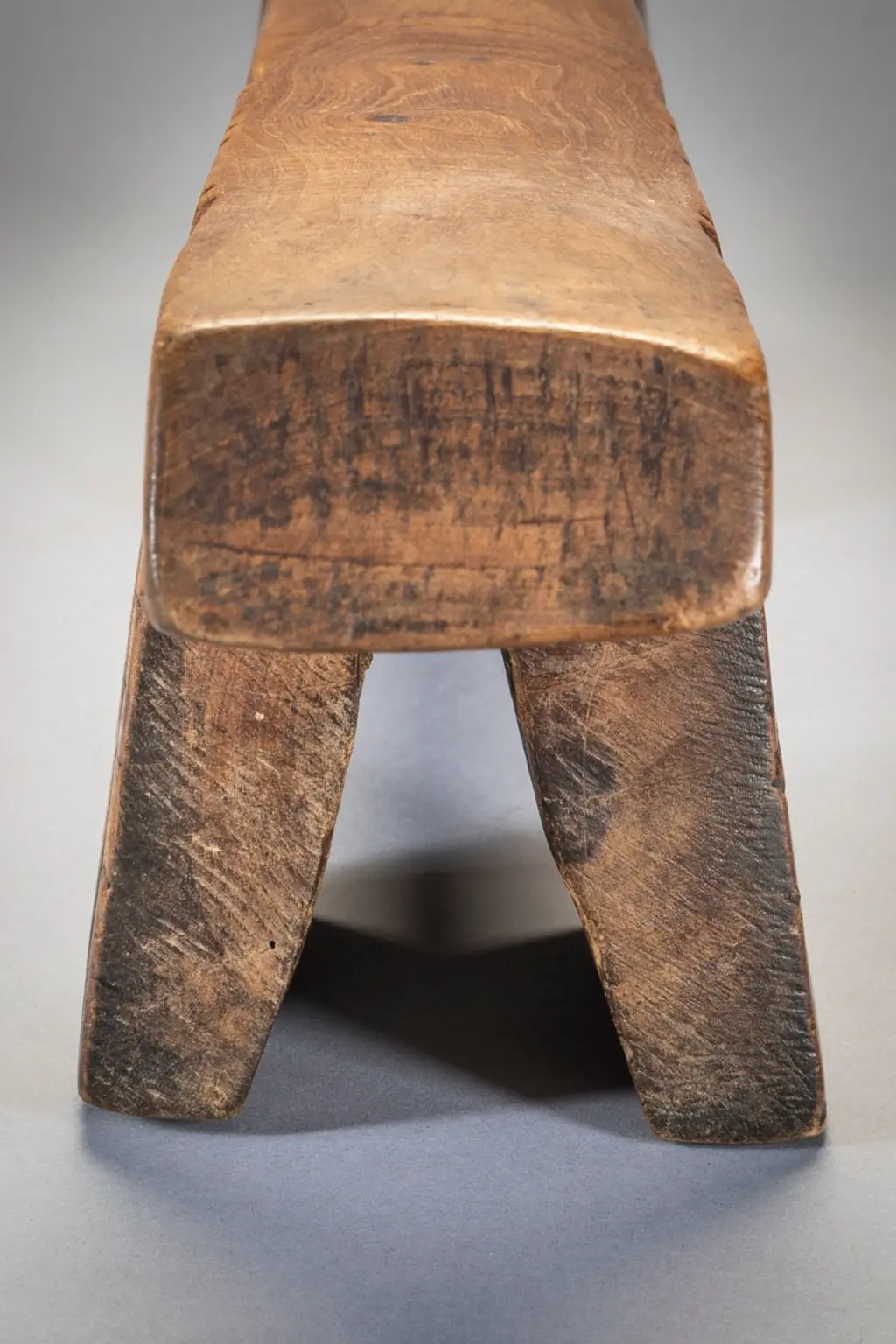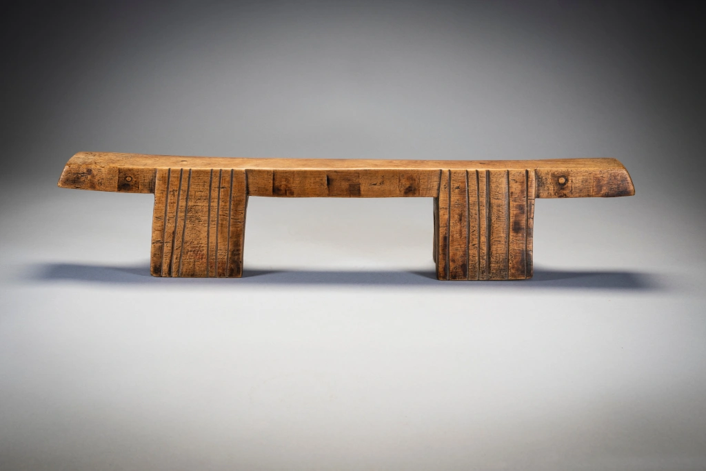 Une pièce trouvée sur le terrain par Mavis Duma et le prêtre anglican Clive Newman dans les années 90. De première approche de forme classique elle comporte pourtant de nombreuses singularités: son bois clair et lourd est peu fréquent, ses proportions sont rares (très long, peu haut), ses traces de pyrogravures en parti effacées montre un usage de plusieurs décennies. Son originalité le rend compliqué à situer géographiquement Clive Newman n’ayant pas laissé d’information précises sur cette pièce.