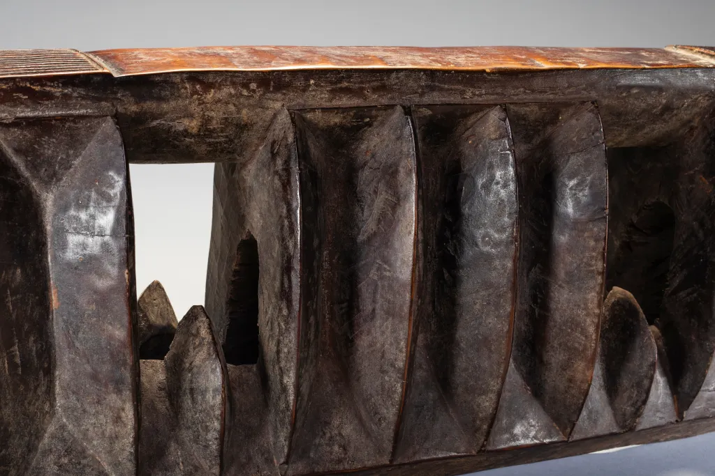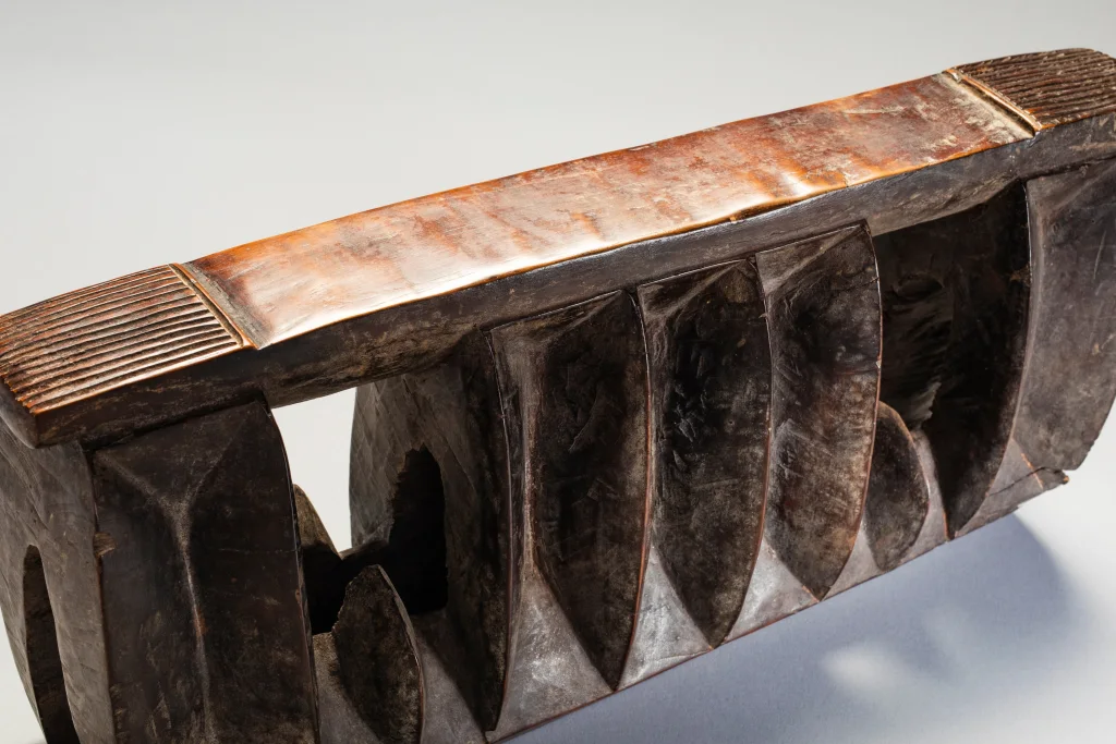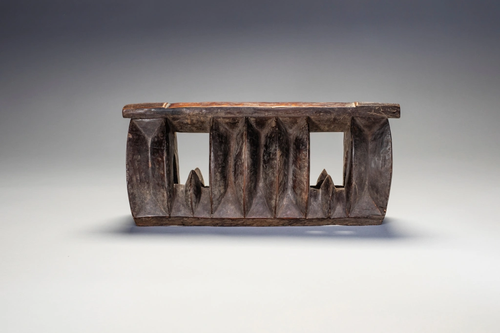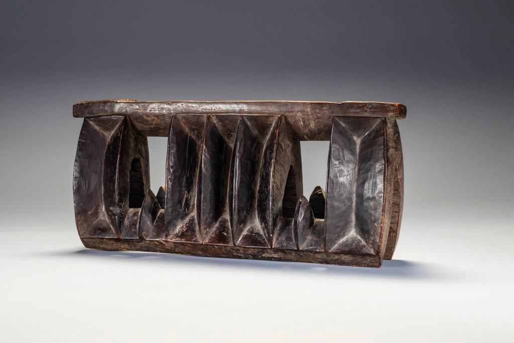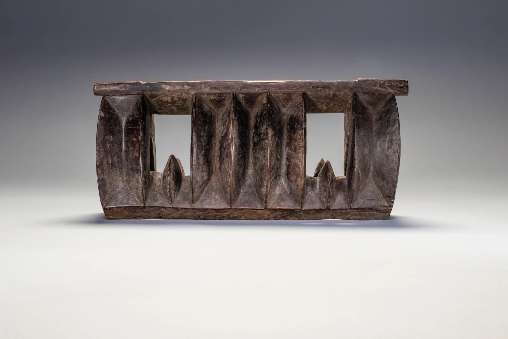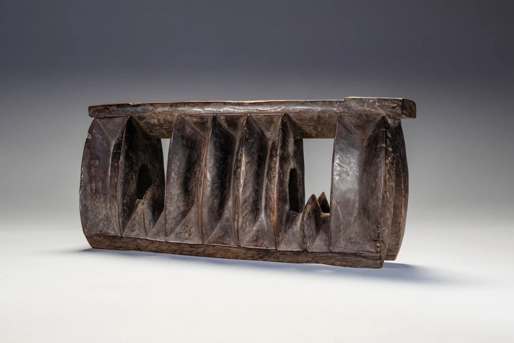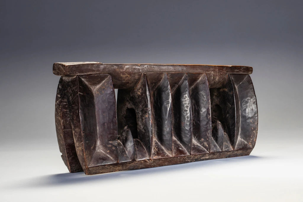 Un appui-tête en forme de « mâchoire de requin » assez rare, celui ci est de taille plus petite qu’à l’accoutumée (voir Z125). Il est dit que la forme de la mâchoire serait là pour faire fuir les « mauvais esprits » lors du sommeil. Sa région est non déterminée.