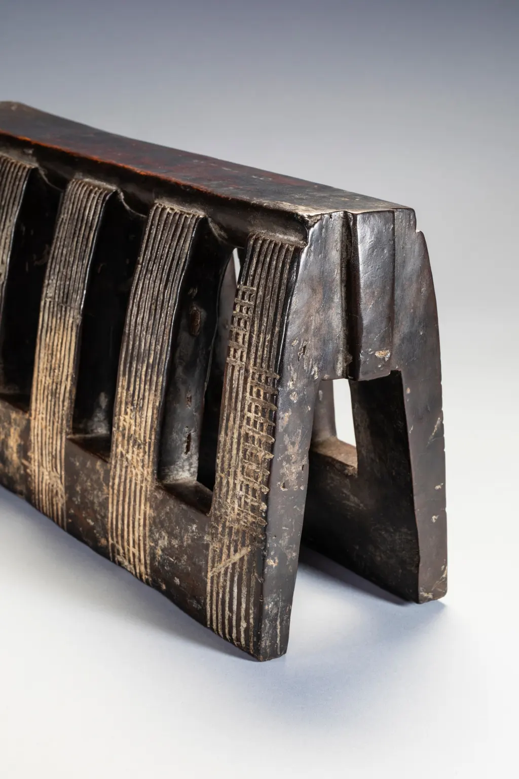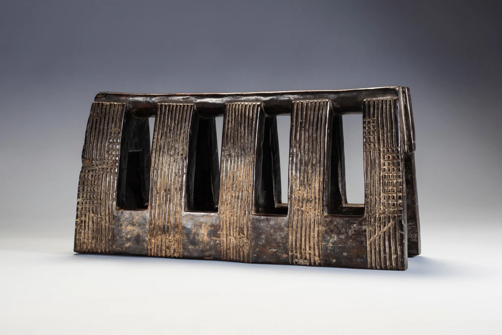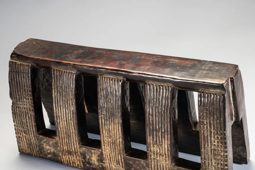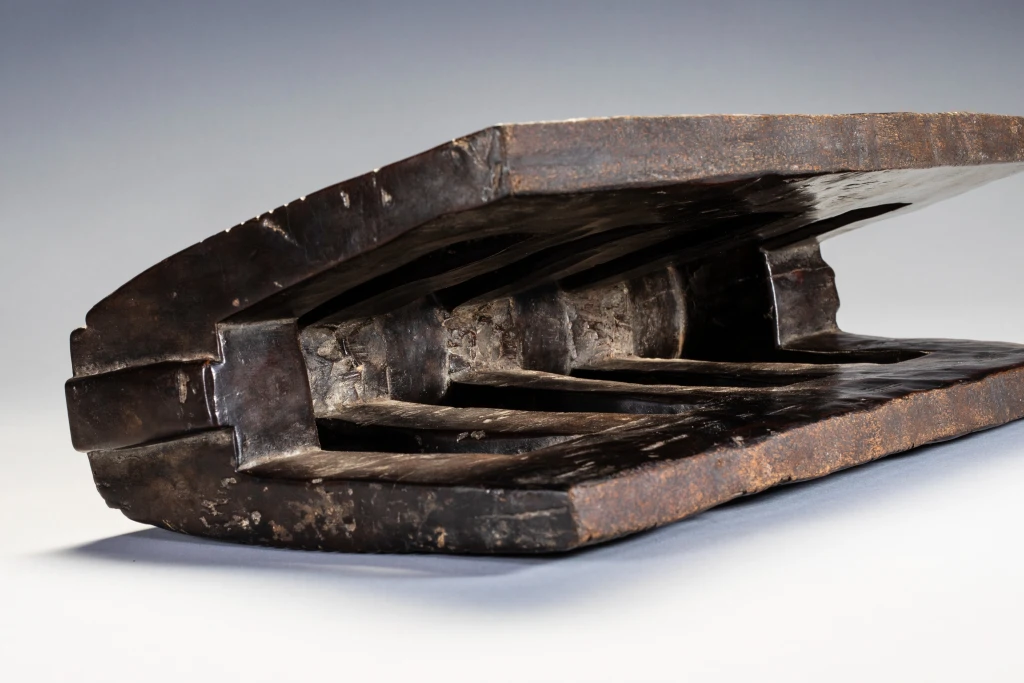 Une pièce imposante avec 5 colonnes striées sur chaque face. Sa hauteur imposante devait permettre à son propriétaire initial de s’en servir également comme tabouret.