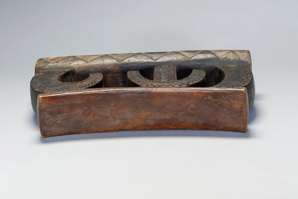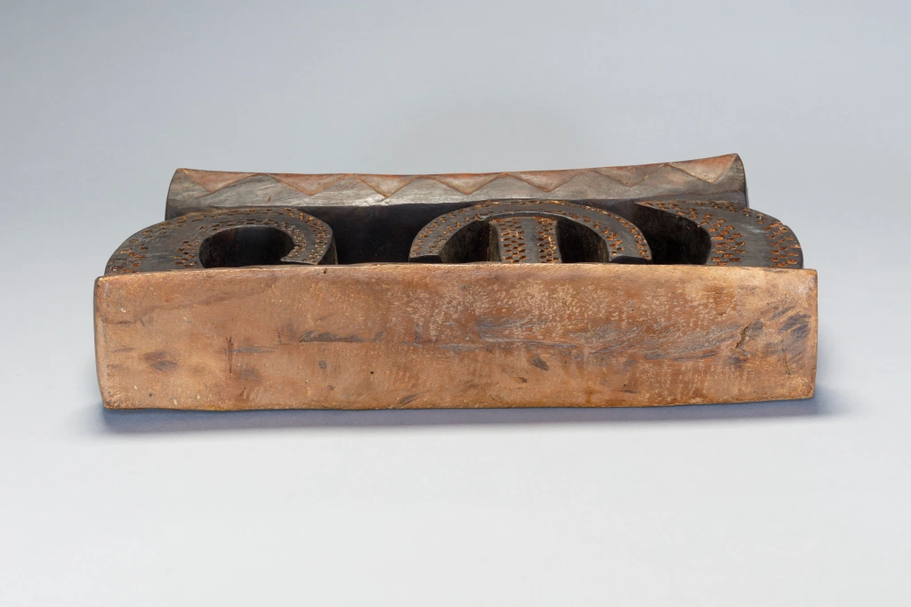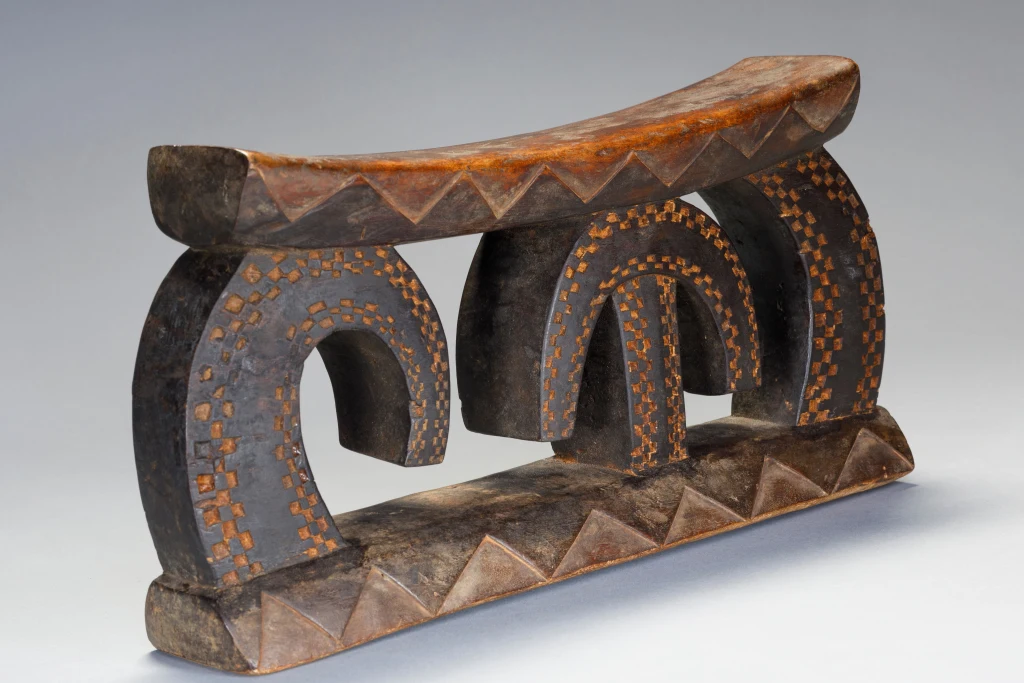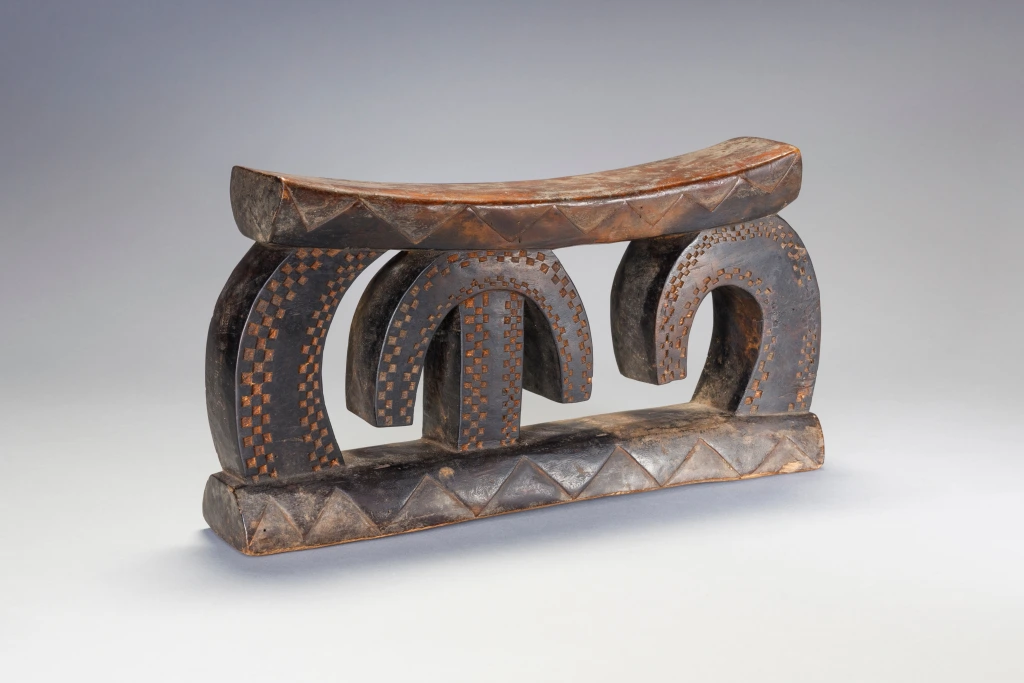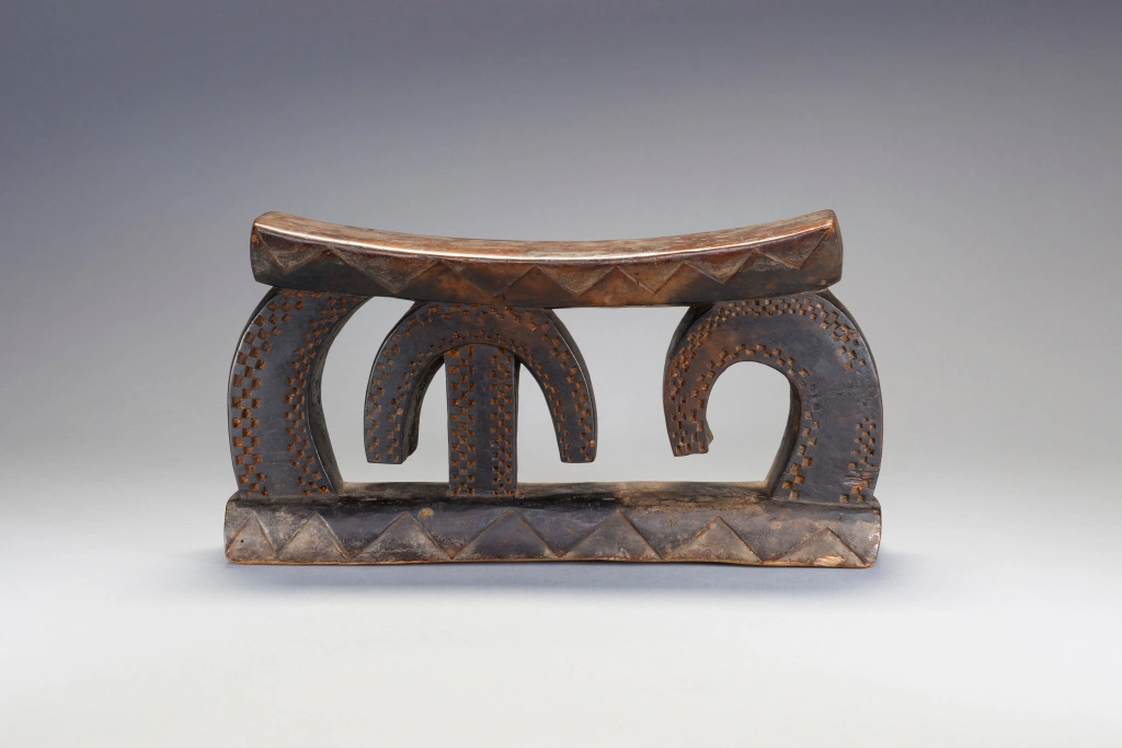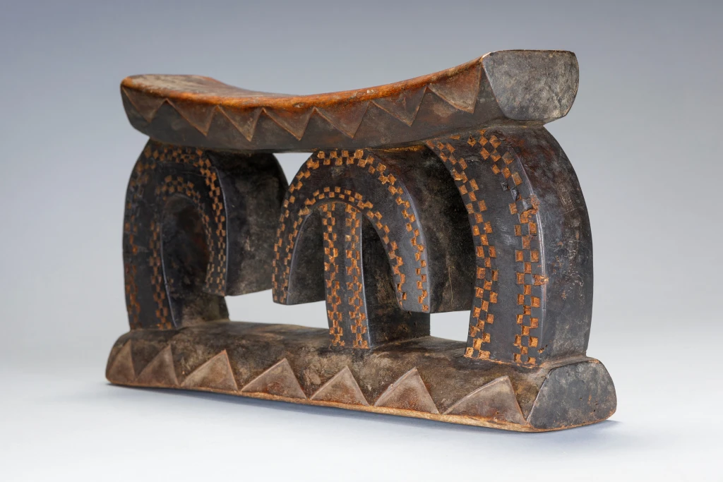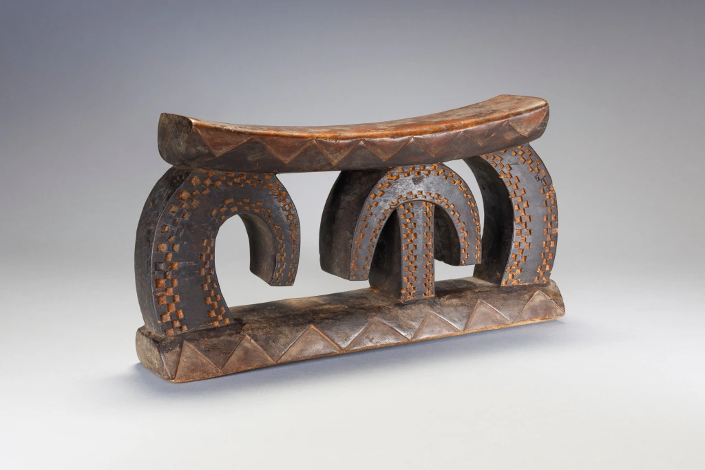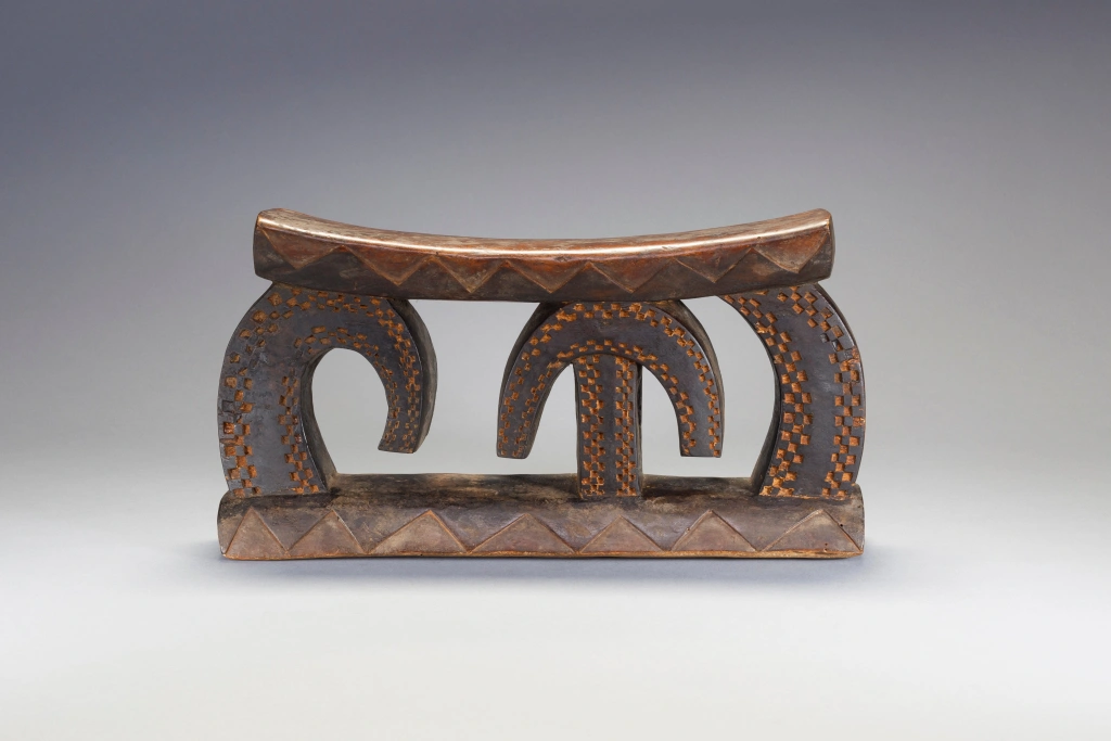 Une pièce a la forme très étonnante avec des arcs de cercle couverts d’amasumpa. Ce sculpteur non identifié ou cette école de sculpture a réalisé plusieurs pièces de ce style lors de la première partie du XXe siècle, dont une similaire exposée au British Museum.