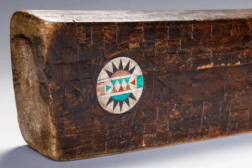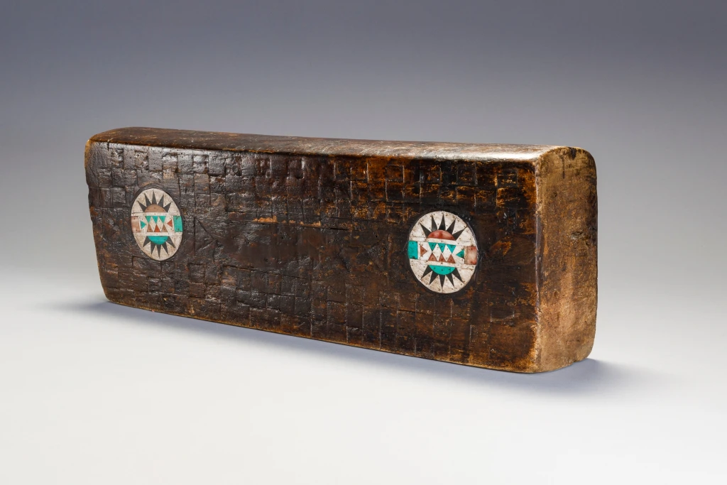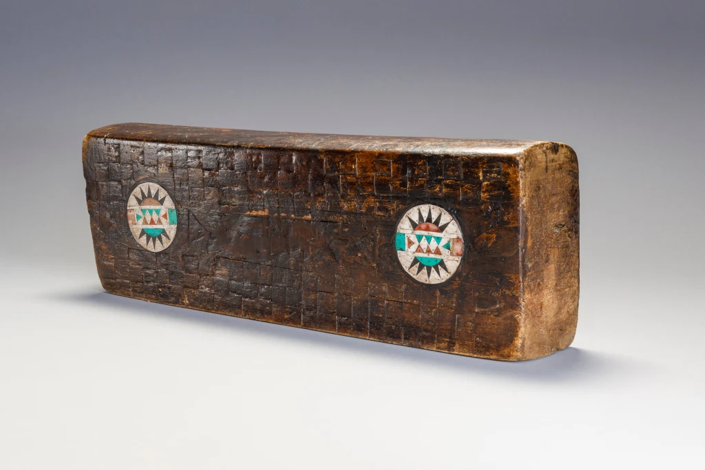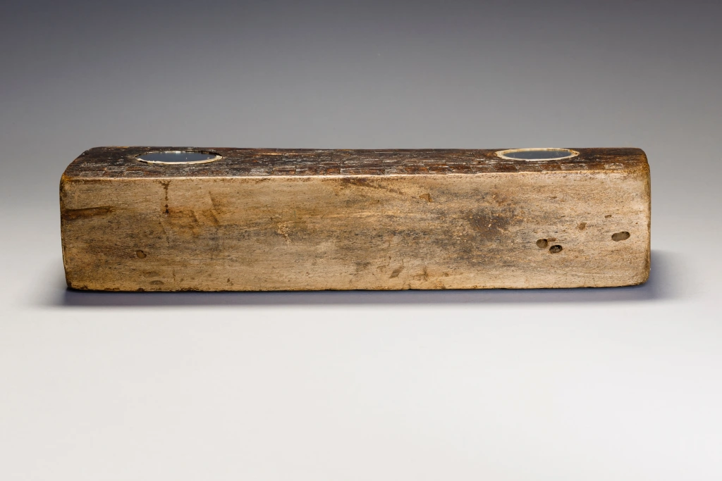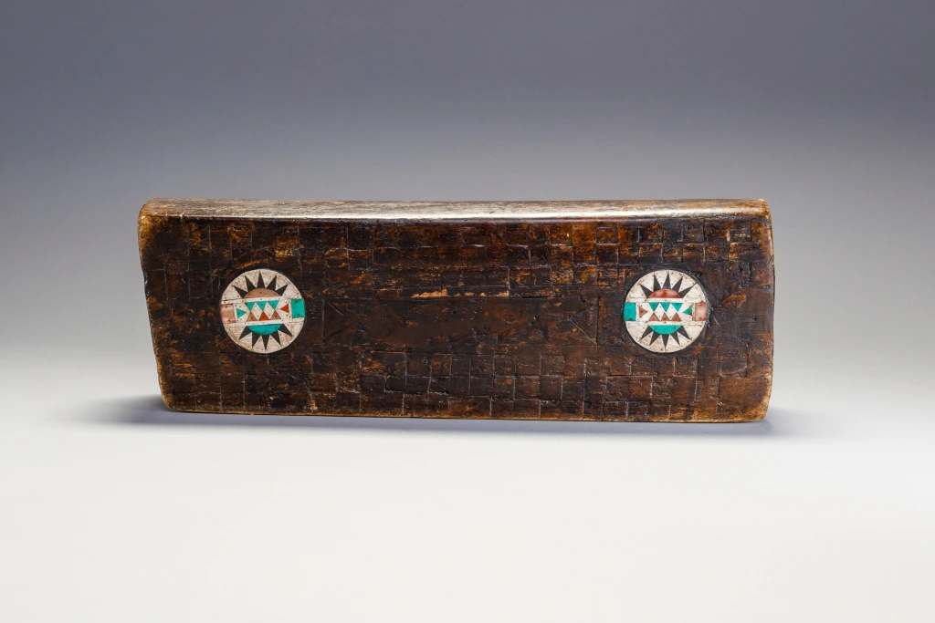Un appui-tête rare et particulier en bloc avec incorporé dans le bois : une paire de boucles d’oreilles située sur la face avant ainsi qu’un ensemble de deux miroirs sur sa face arrière.  les femmes zouloues pouvaient ainsi faire leur toilette grâce aux miroirs inexistants dans les huttes et la légèreté du bois de figuier donnait de la maniabilité à ce miroir occasionnel.
