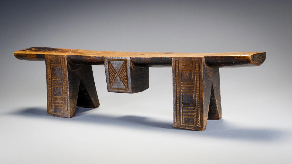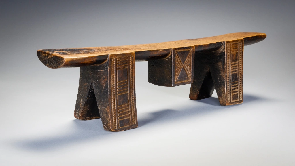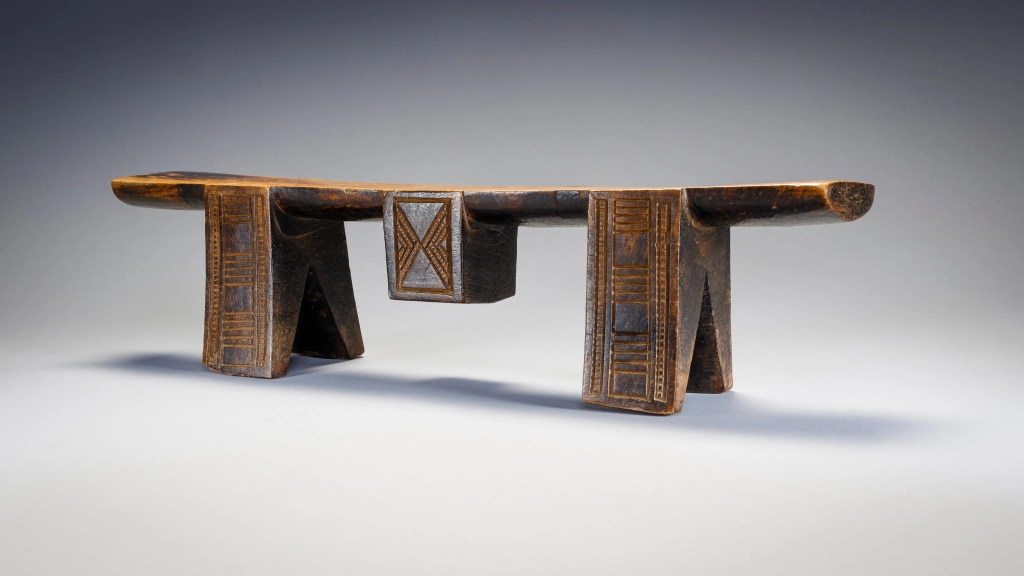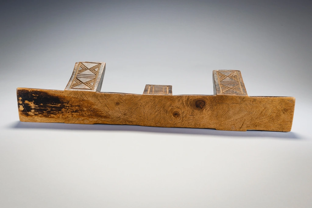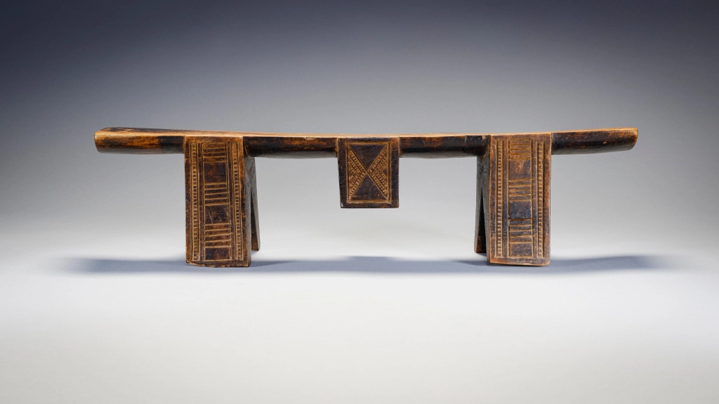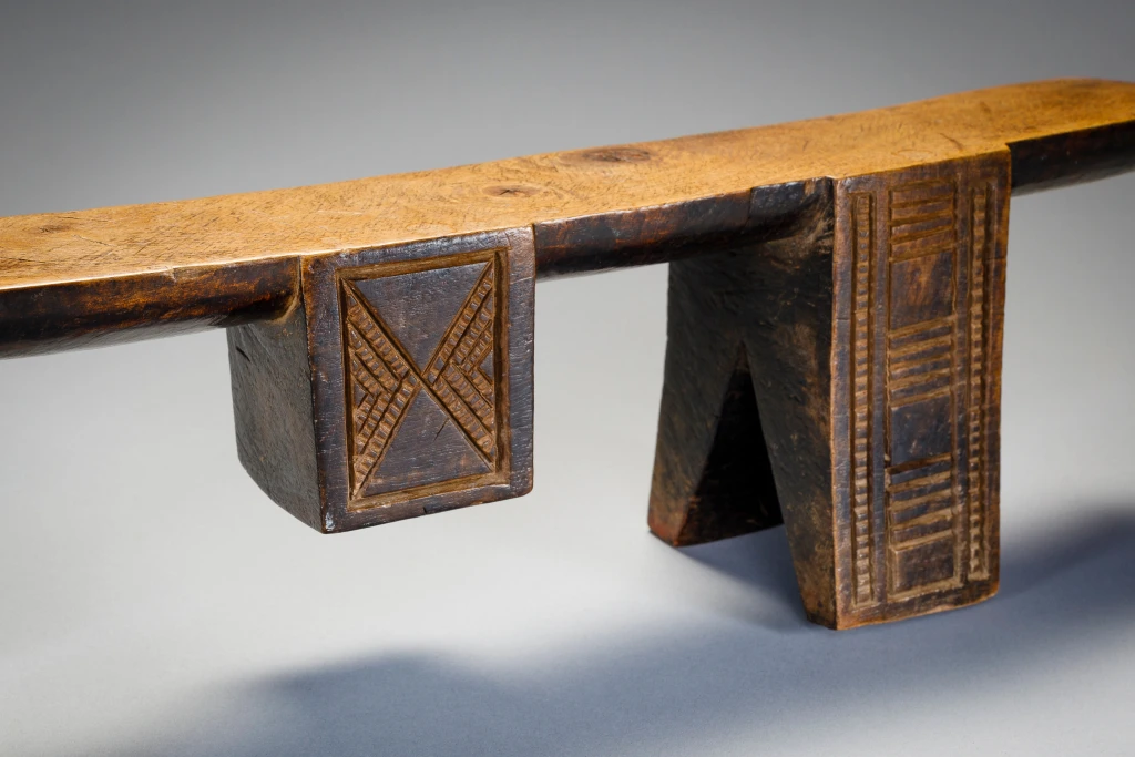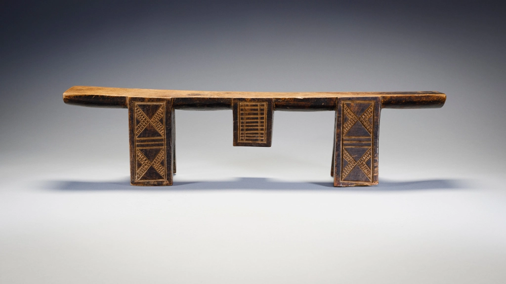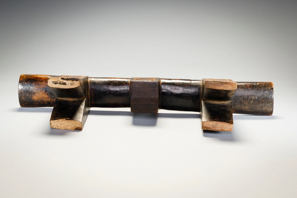 Cet appui-tête a été sculpté par Nkwishi Shezi. Nkwishi Shezi était le cadet des frères Shezi, mais si on regarde les appuis-tête qui lui sont attribués, il a aussi été le plus prolifique. Il est le fils de Dushwa Shezi et la deuxième femme de ce dernier : MaMvelase Shezi. Ils ont aussi eu trois filles et un autre fils qui lui n’était pas sculpteur. La plupart des appuis-tête de Nkwishi Shezi ont la forme Msinga classique avec deux paires de pieds fendus et un ergot central carré. Même si de nombreux appuis-tête de ce style lui sont attribués, cette forme était assez populaire chez les sculpteurs Msinga.
