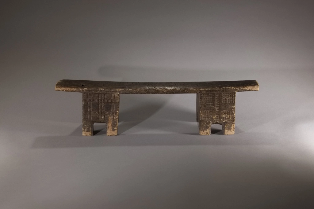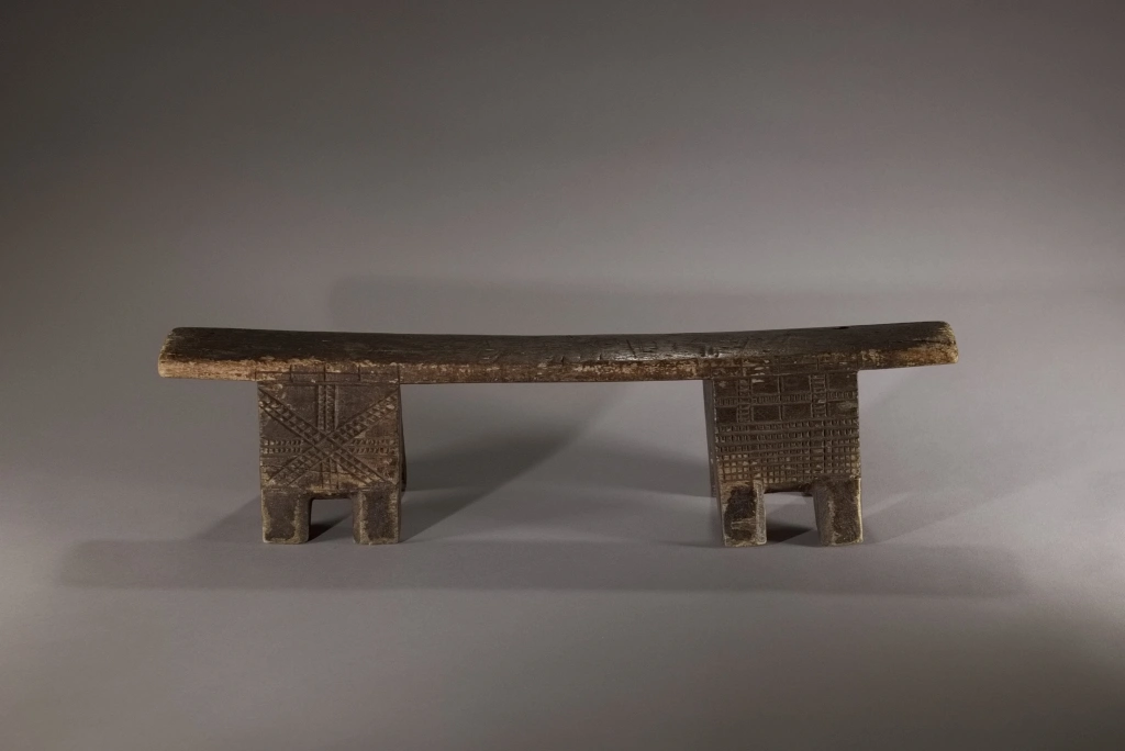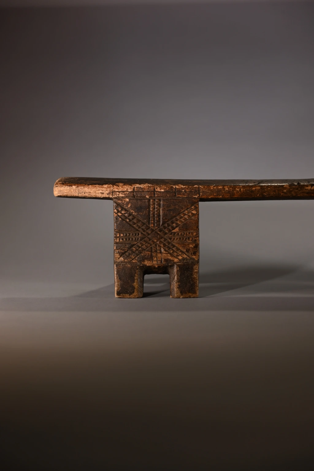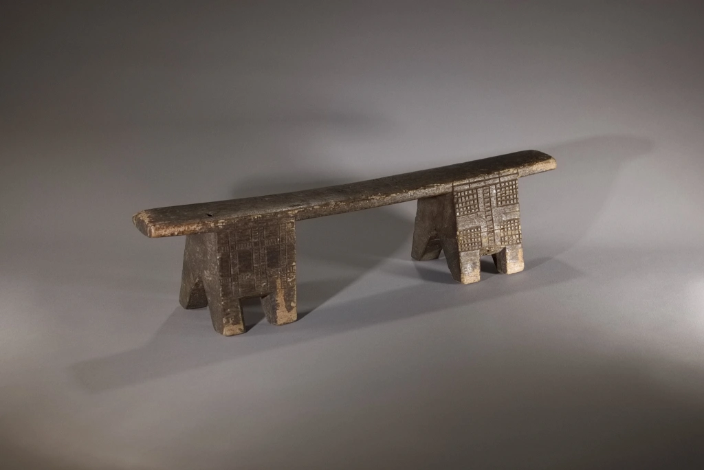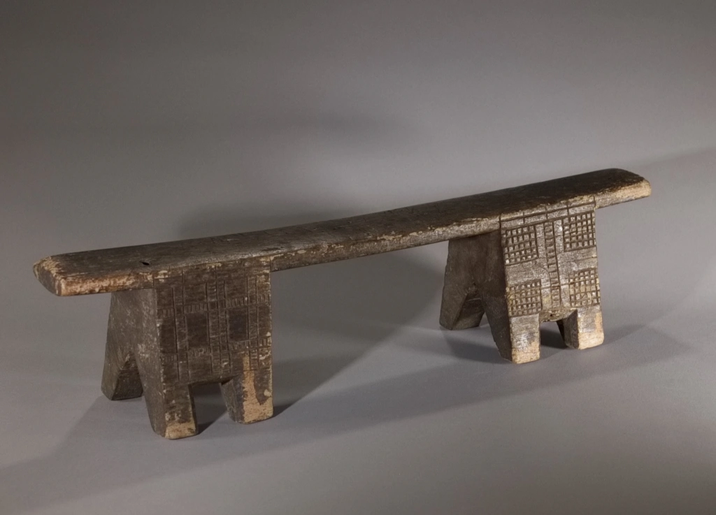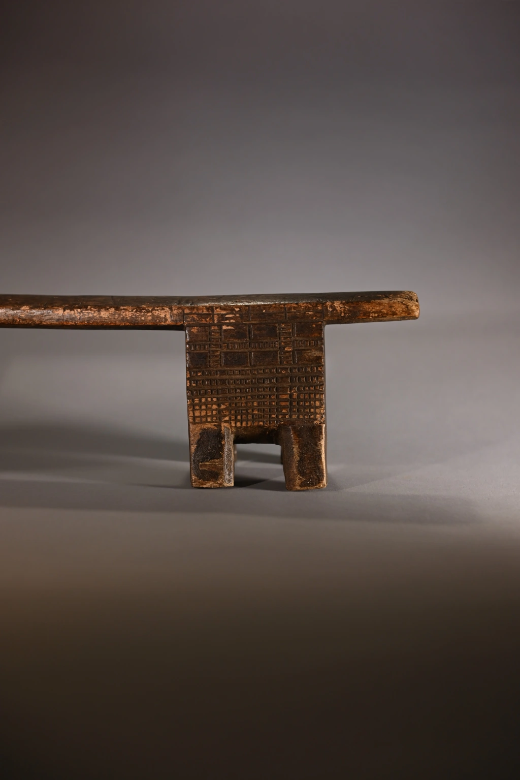 Une pièce quasiment historique car ayant appartenu des 1834 à la famille du roi Cetshwayo Kampende du clan d’Eshowe , roi né en 1826. L’origine de cette pièce a été challengée et confirmée par le conservateur du musée de Soweto. Apres avoir longtemps appartenue à cette dynastie, le petit fils du roi a transmis cette pièce en signe d’amitié à la famille royale Sifiso Anele. Est-ce a l’occasion d’un mariage rapprochant les deux familles ou simplement pour marquer une alliance entre les deux familles, cela n’a pas été éclairci. Bien que correctement conservée, l’âge canonique de cette pièce a laissé quelques stigmates qui la rendent encore plus fascinante et originale avec sa forme en 2 fois quatre pieds extrêmement rare.