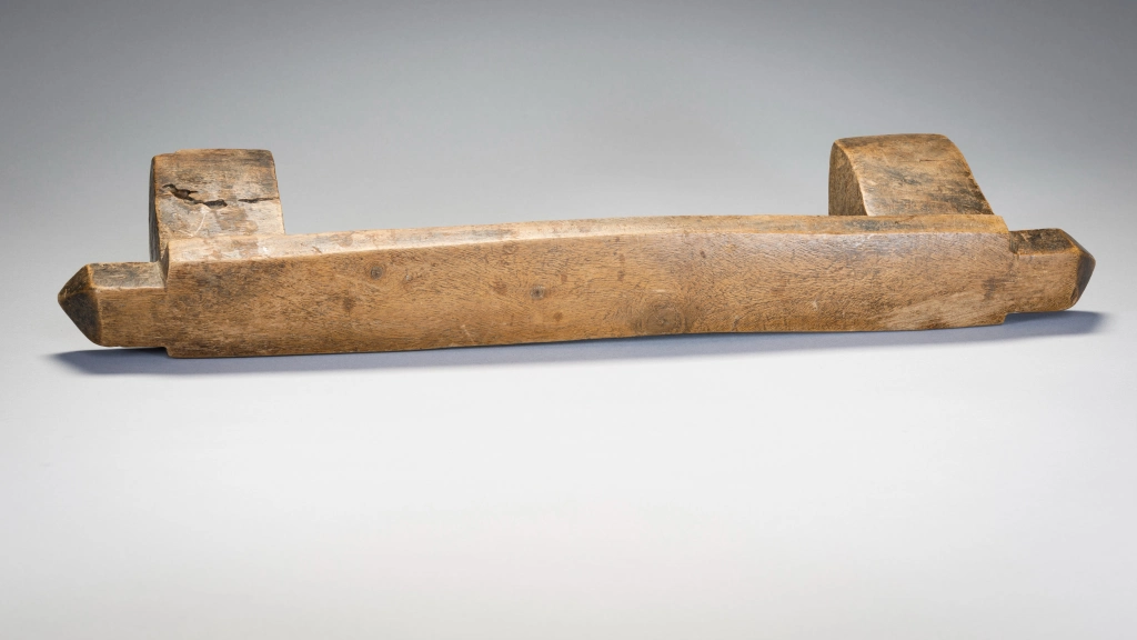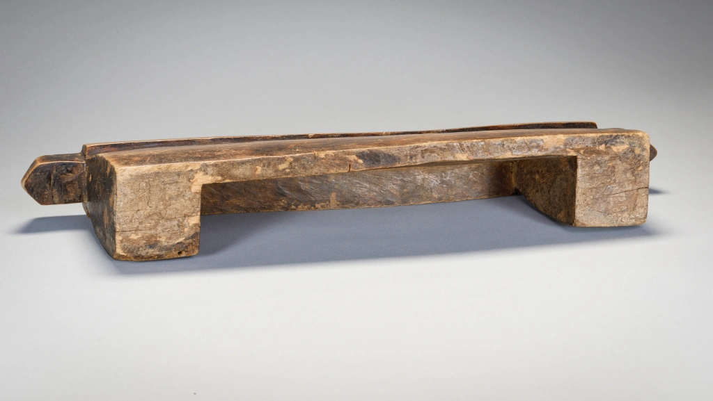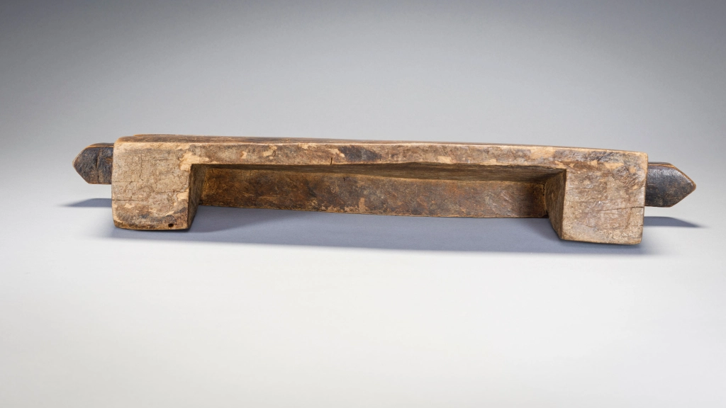 Un appui-tête bloc avec une grande engravure sur l’une des faces. Les ailettes aux extrémités sont biseautées et teintées de noirs pour singulariser cet appui-tête.