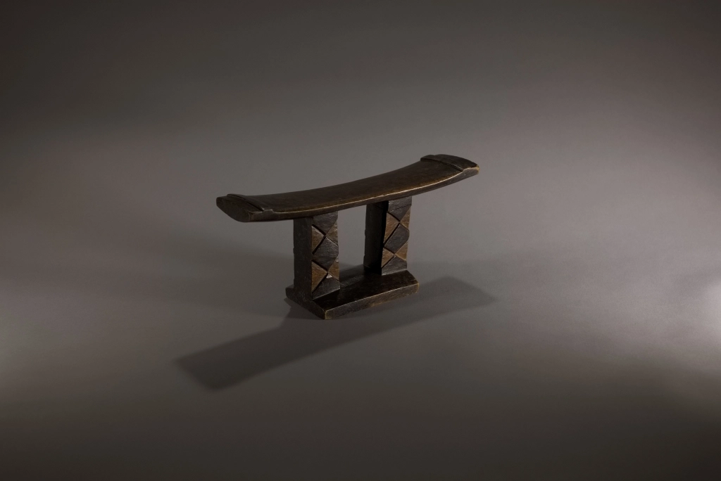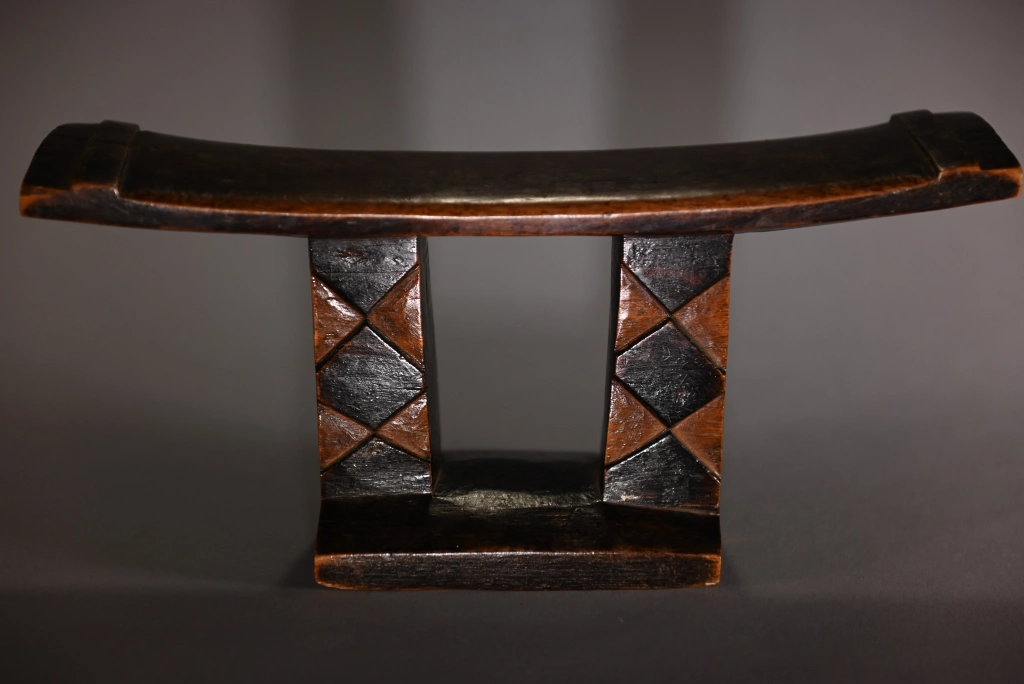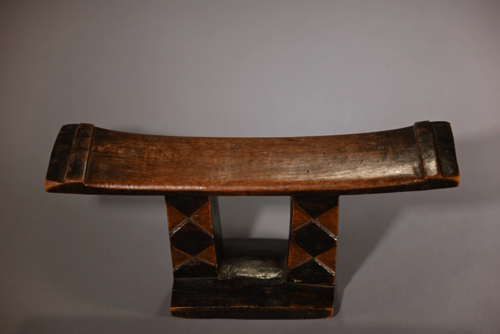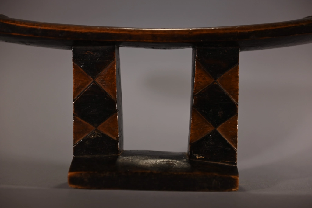 Une pièce, ayant suivi le parcours de Z200, à savoir passer entre les mains de nombreux collectionneurs sud-africains ces 30 dernières années, avant de rejoindre la collection Zimer, en Europe, en 2021. Sa structure est atypique en raison d’un socle réduit et s’arrêtant aux droits des deux maintiens verticaux, créant une forme d’instabilité à la pièce. Son style de décoration se retrouve au début du XXe siècle chez plusieurs écoles de sculpteurs. Sa taille réduite en fait une pièce esthétique qui devait probablement être un appui-tête de voyage particulièrement léger.