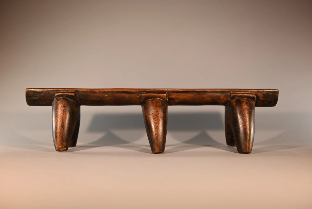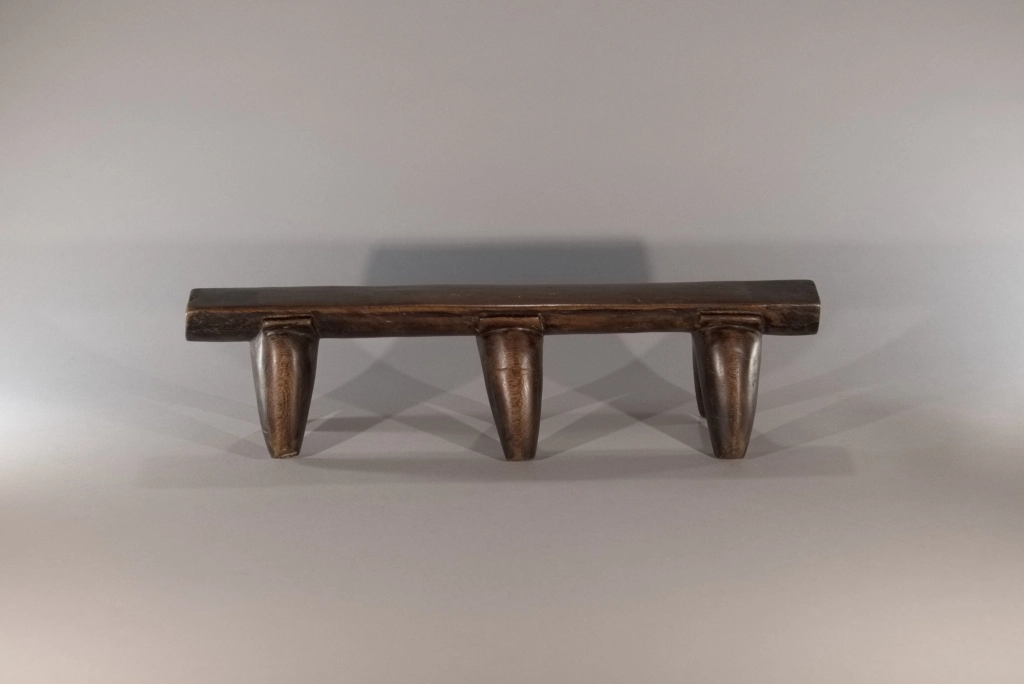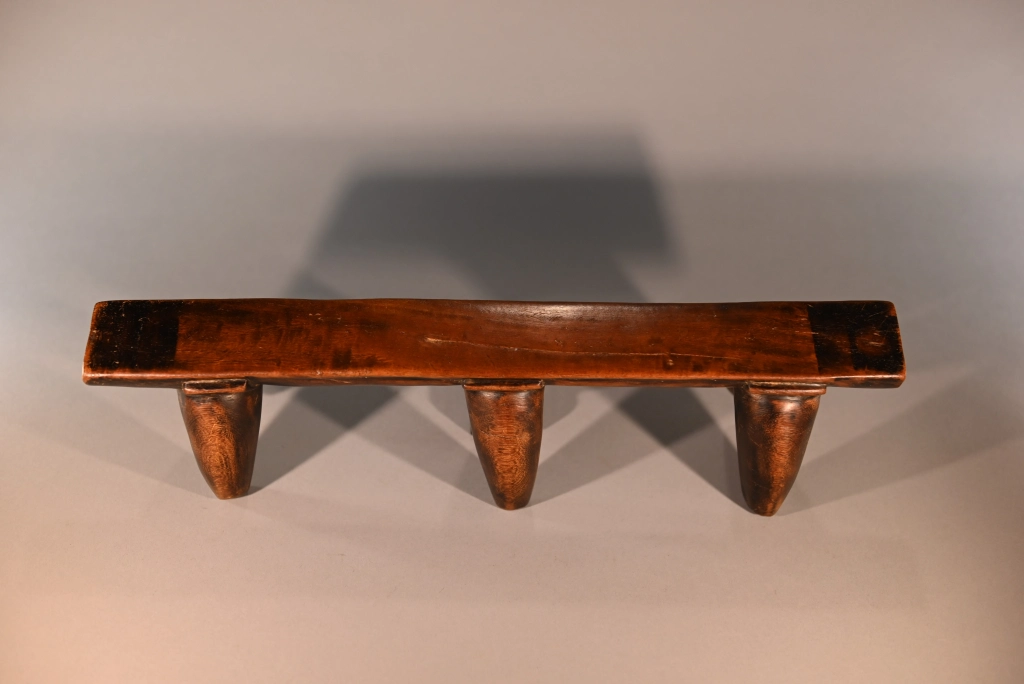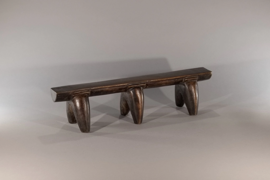 Une très belle pièce, composée de trois paires de pieds classiques avec sculpture d’une embase entre chaque pied et la plate-forme. Le classicisme de sa silhouette et la patine brute font de cette pièce un appui-tête qui a sa place dans toutes les collections.