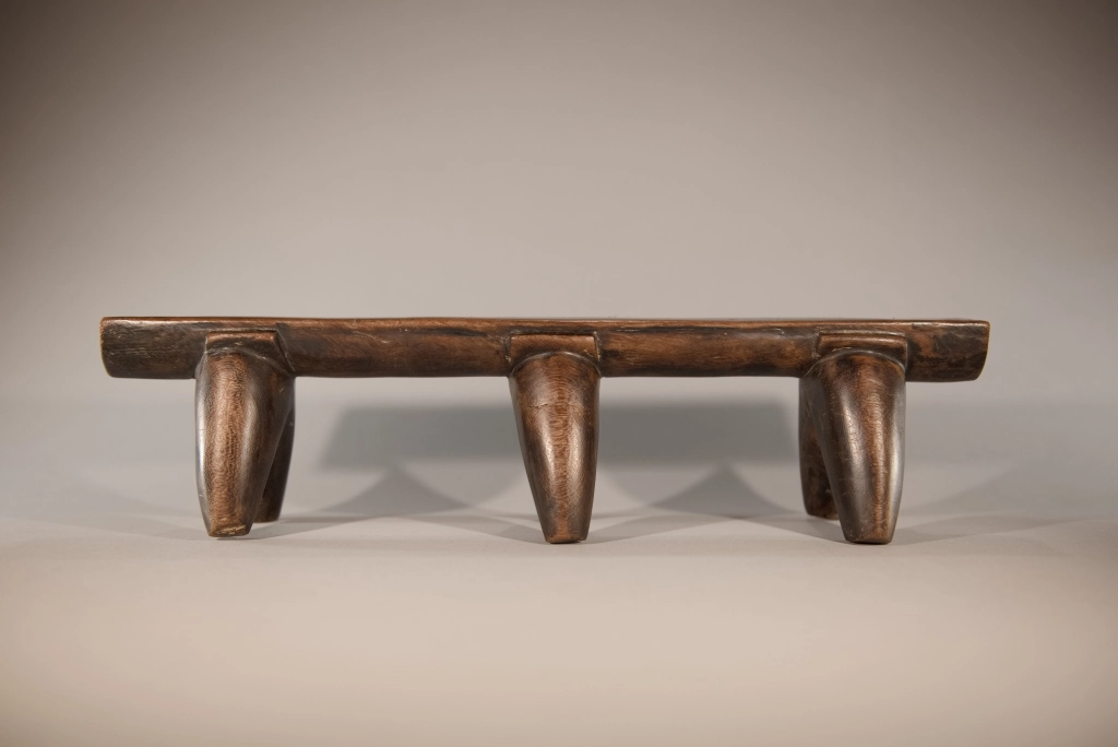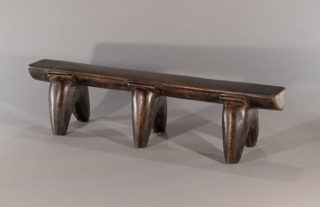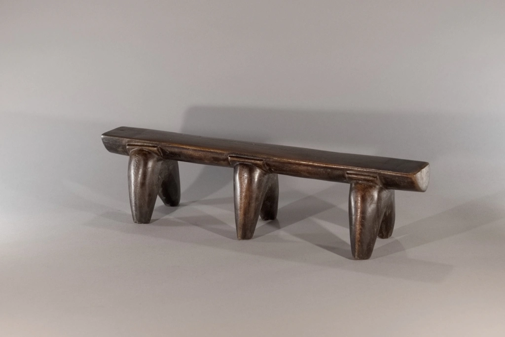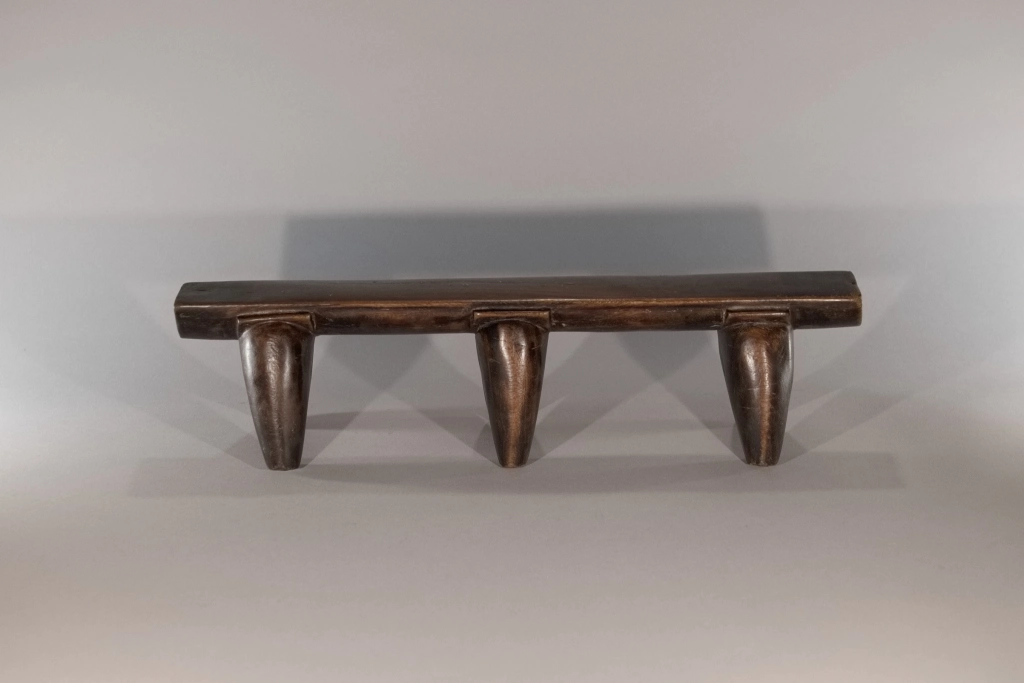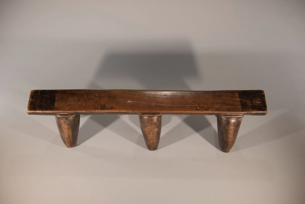 Une très belle pièce, composée de trois paires de pieds classiques avec sculpture d’une embase entre chaque pied et la plate-forme. Le classicisme de sa silhouette et la patine brute font de cette pièce un appui-tête qui a sa place dans toutes les collections.