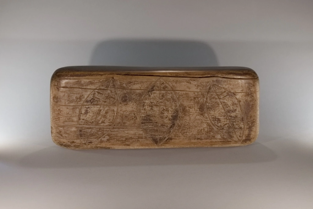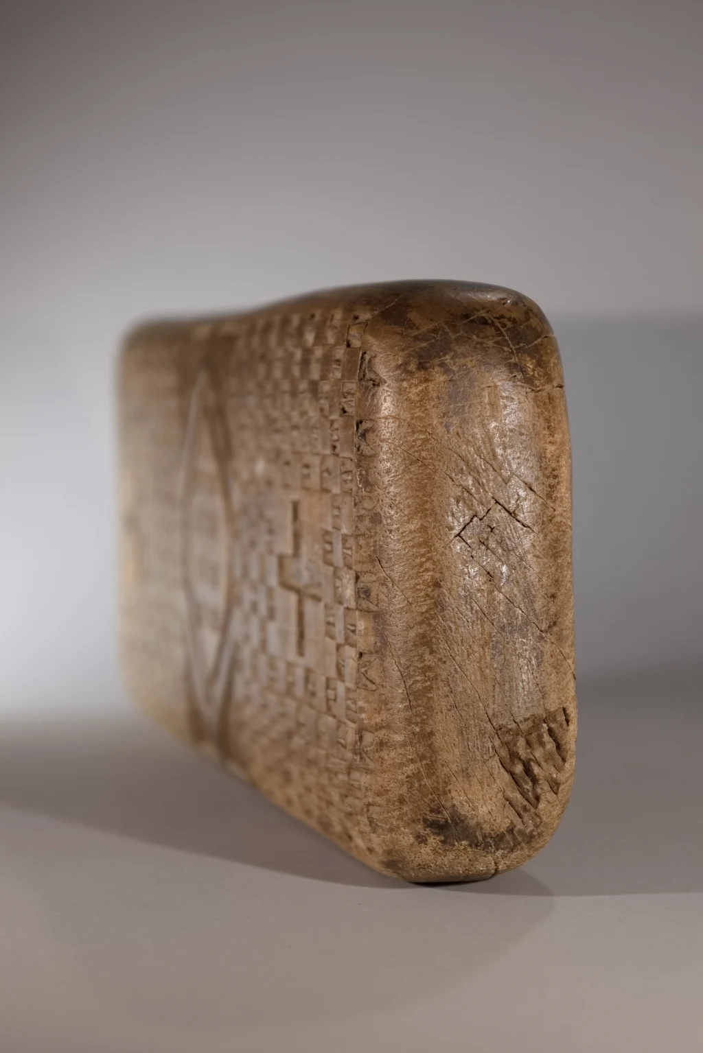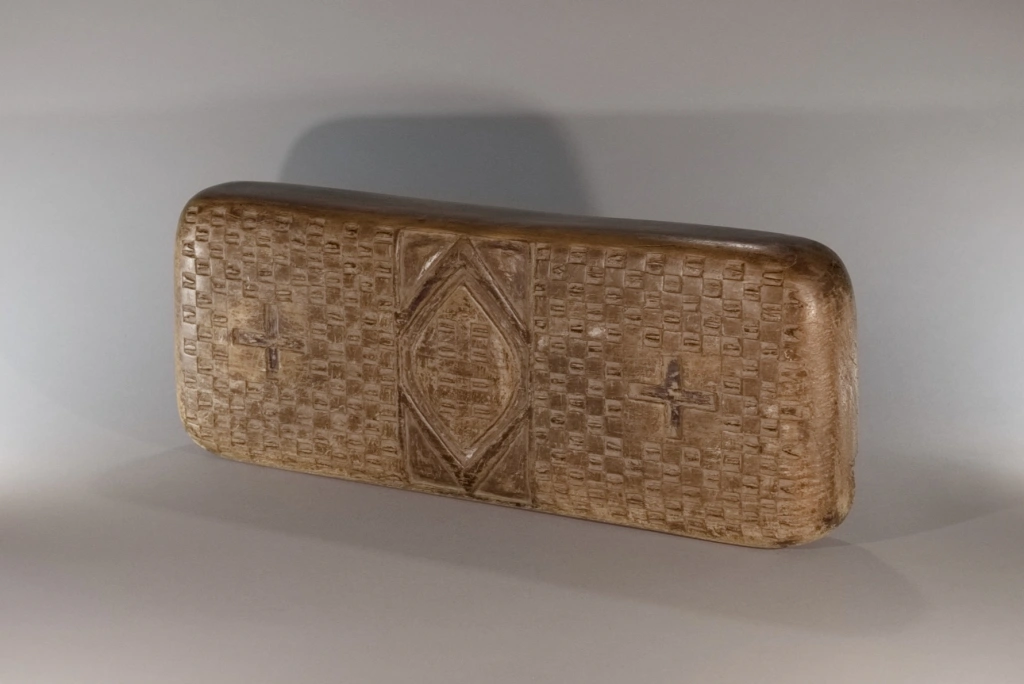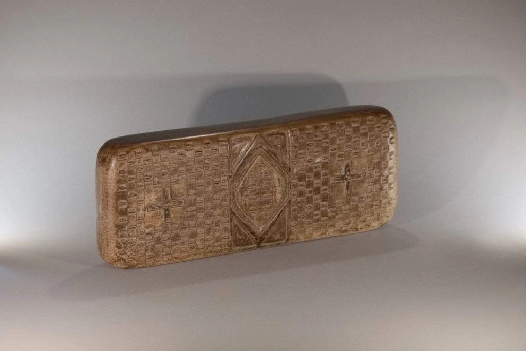 Un beau bloc classiquement décoré, agrémenté d’un bouclier zoulou en son centre. Il est de taille imposante et a dû appartenir à un homme particulièrement grand quand bien même cet appui-tête a probablement servi de tabouret au regard de sa hauteur.