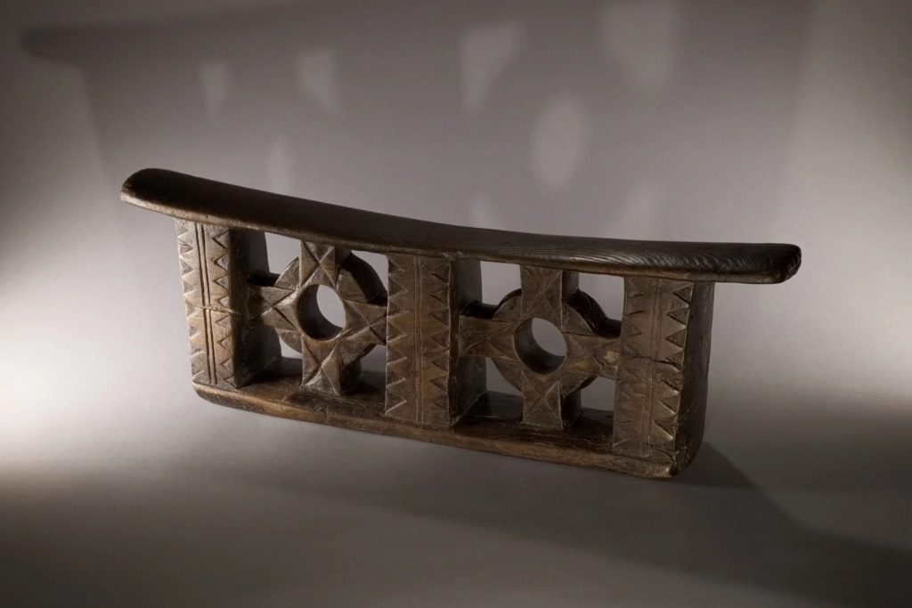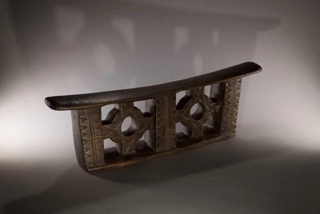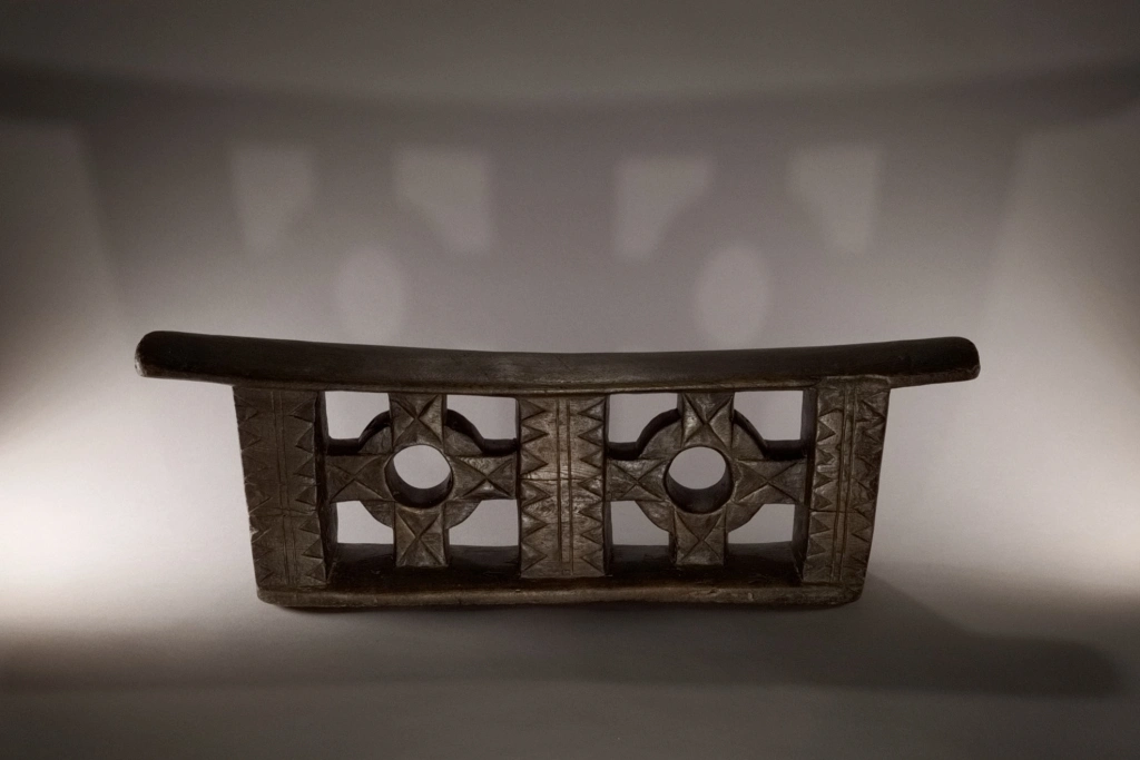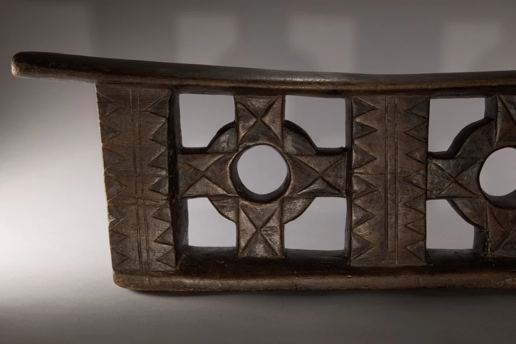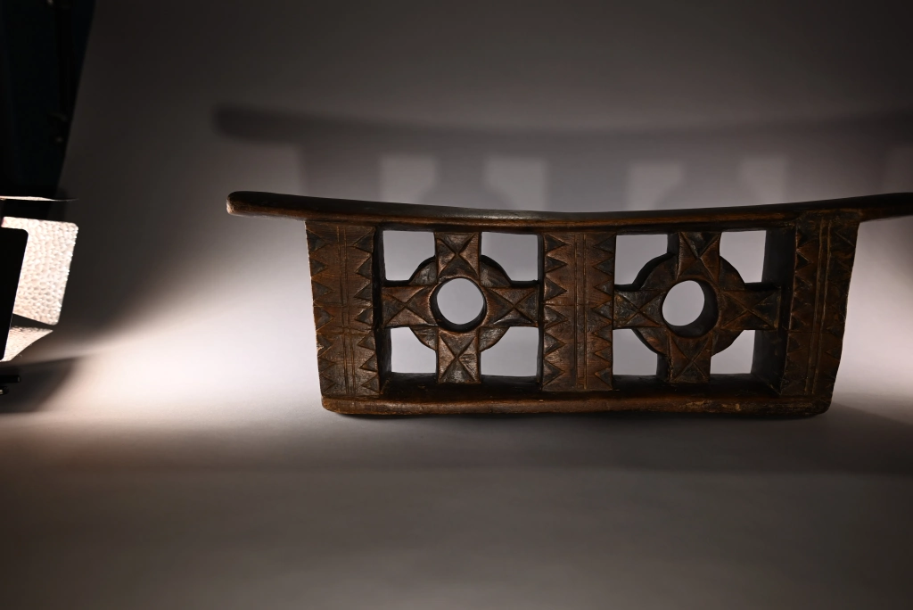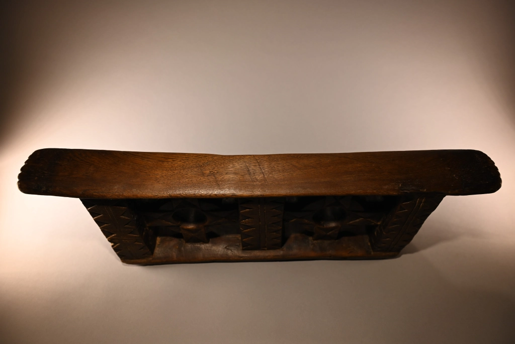 Une superbe pièce, muséale, imposante par sa taille, sa forme esthétique et ses décorations provenant de la fin du XIXe siècle. Le décalage des deux croix encadrant les cercles avec les trois colonnes donne un sentiment de volume accentué par les vides entre les colonnes et au centre des cercles. Une pièce, maîtresse de la collection pourtant très large.
