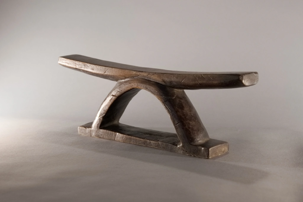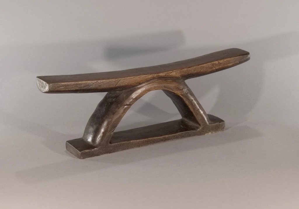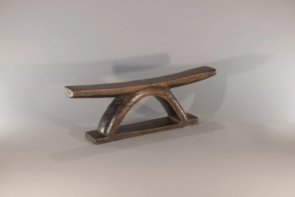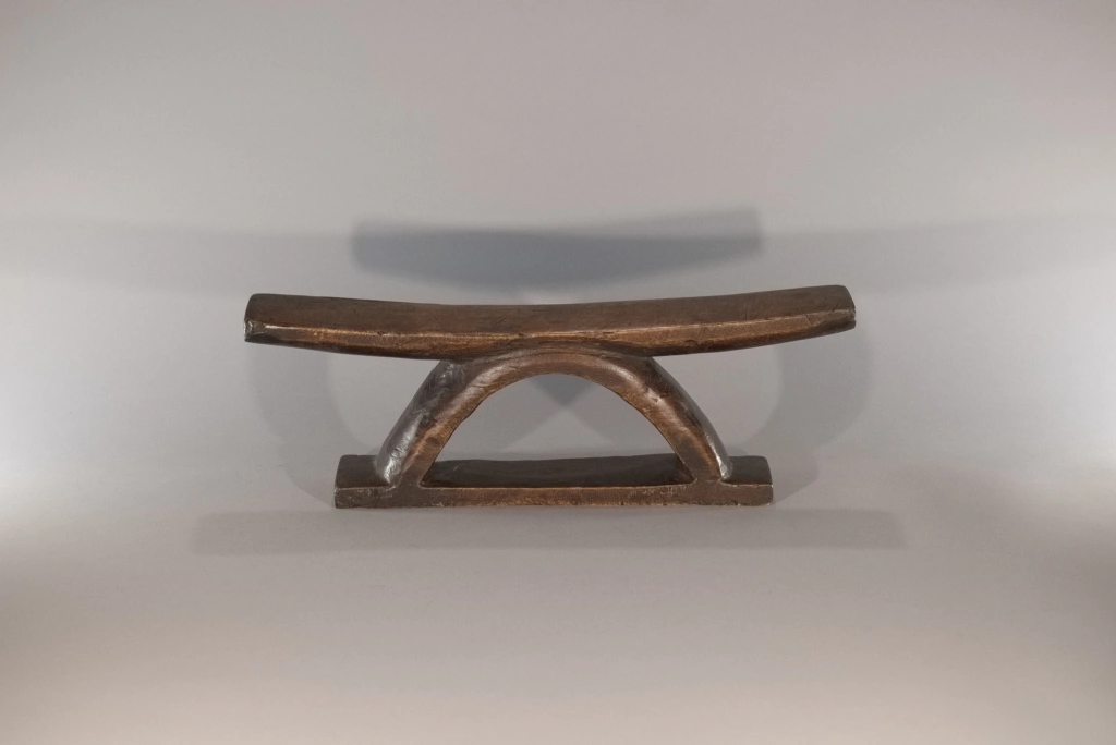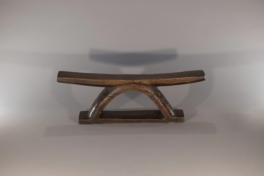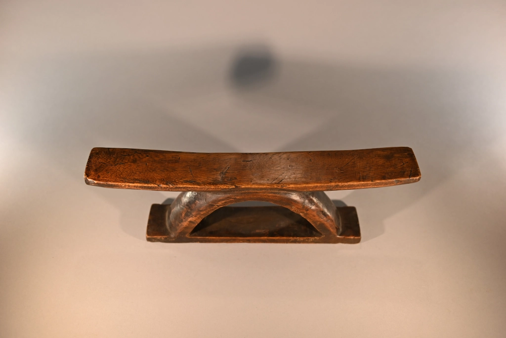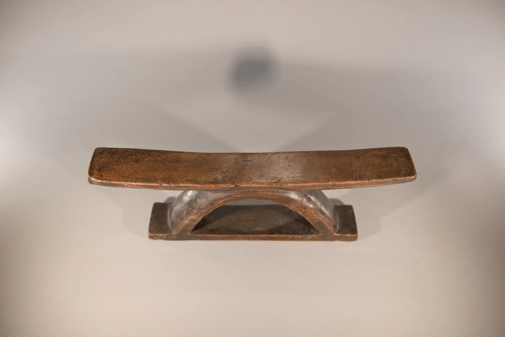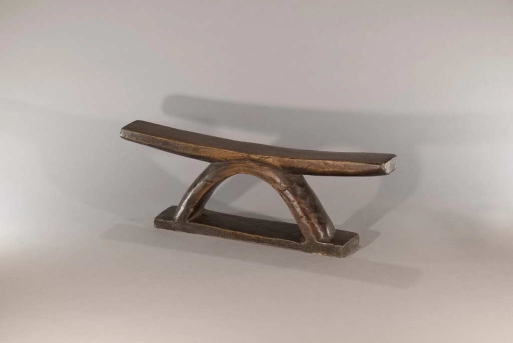 Un appui-tête au profil simple, fini et brut mais pour autant racé et original par sa forme en étrier. Nous disposons de peu d’informations sur cette pièce, visiblement récente, qui se situerait dans la région du Drakensberg.