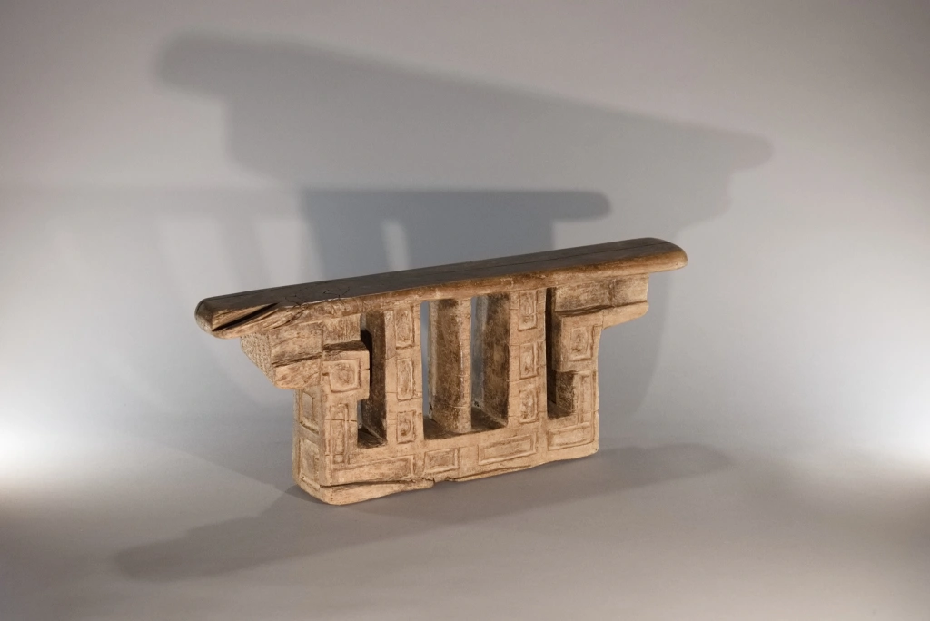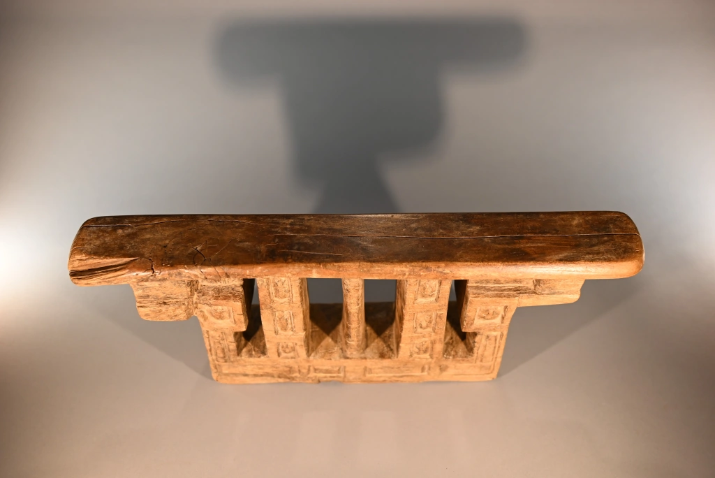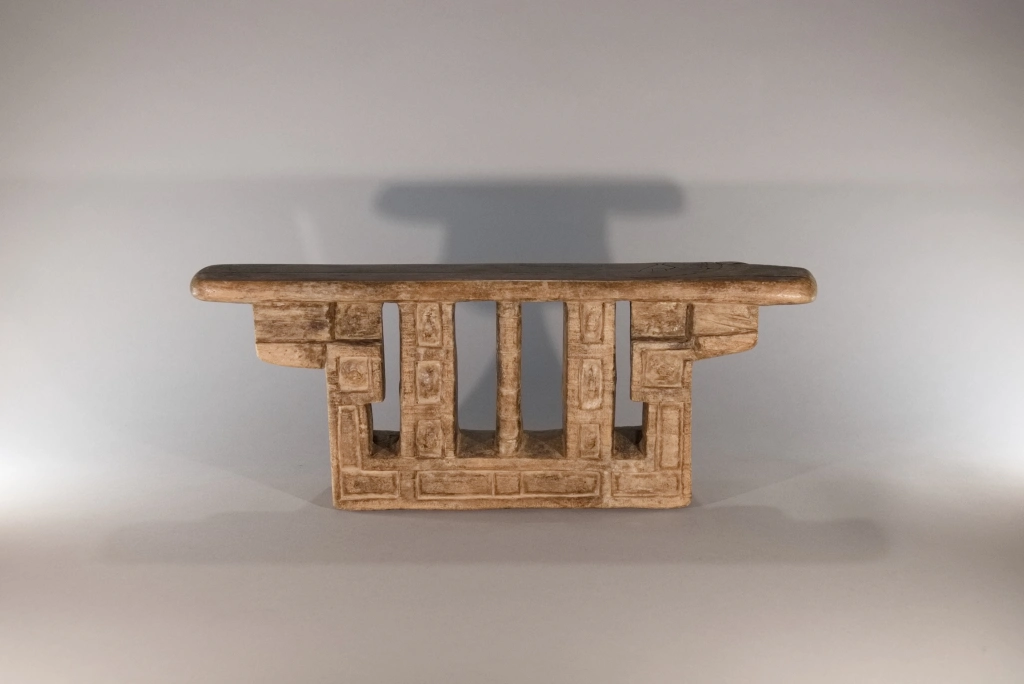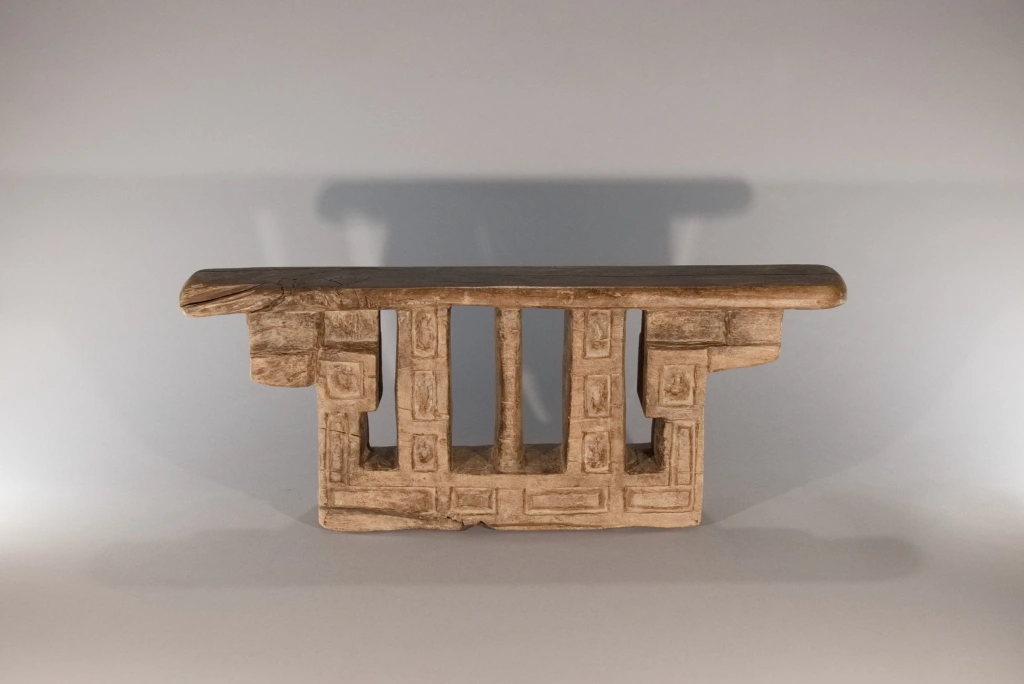 Encore une pièce imposante par sa taille, son poids et son profil, tout comme Z293 et Z292. Nous savons avec certitude qu’elle avait la double fonction de tabouret et d’appuie-tête, qui plus est pour son propriétaire comme pour son épouse dans la journée. Cette pièce tape immédiatement dans l’œil des amoureux des appuie-tête Zoulou, car c’est le petit frère de la pièce représentée sur la couverture de l’hommage de référence en la matière : « Architecture of Sleep ». Décorée et aérée par ses ouvertures, évasée vers le haut, elle affine son esthétique au premier coup d’œil.